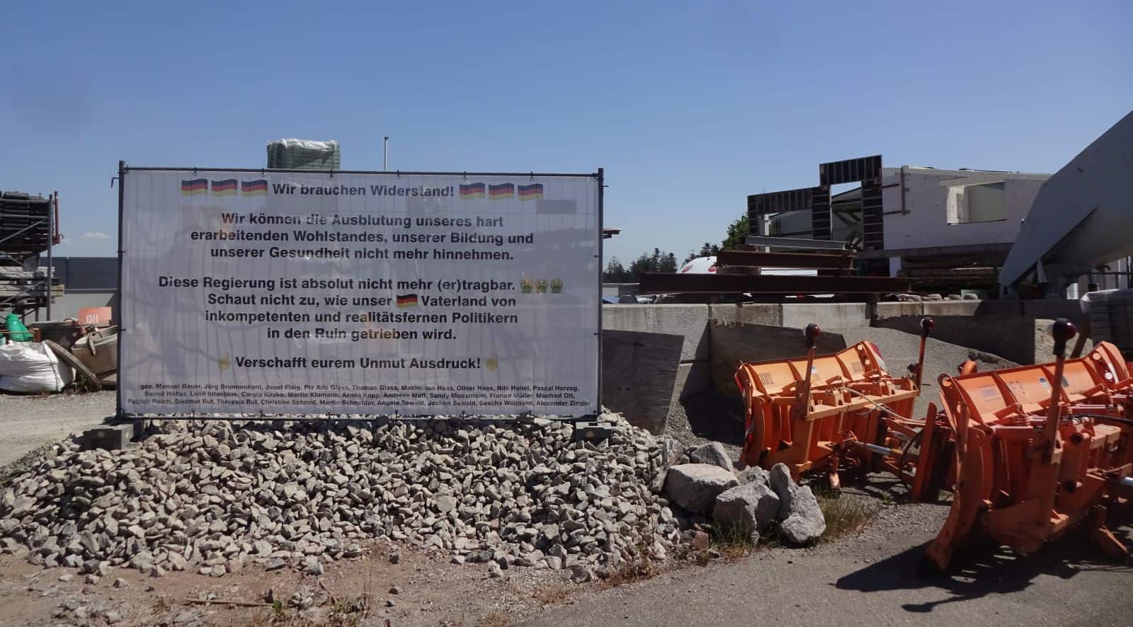 Eingerahmt von sechs Deutschlandfähnchen steht da: „Wir brauchen Widerstand“. Darunter heißt es, man könne „die Ausblutung unseres hart erkämpften Wohlstands unsrer Bildung und Gesundheit nicht mehr hinnehmen“. „Diese Regierung“ sei „absolut nicht mehr (er)tragbar“. Realitätsferne und inkompetente Politiker trieben „unser Vaterland“ in den Ruin. Schließlich fordern die 27 Unterzeichnerinnen und Unterzeichner: „Verschafft eurem Unmut Ausdruck.“