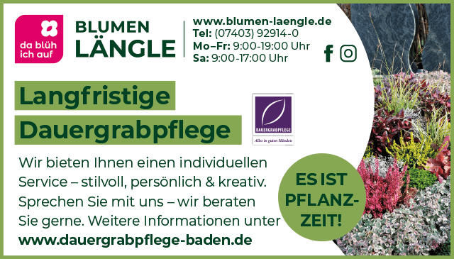 Wer am Grab seiner Angehörigen nicht selbst Hand anlegen möchte, kann auf die Unterstützung vom örtlichen Friedhofsgärtner zählen. „Wir gehen mit viel Fingerspitzengefühl in die Beratung von Trauernden“, erklärt xxy, stellvertretend für viele seiner Kollegen. „Neben viel Einfühlsamkeit ist vor allem das Heraushören der individuellen Wünsche wichtig. In Erinnerung an den Verstorbenen arbeiten wir dann eine persönliche Grab- und Beet Gestaltung aus. Wir pflanzen zum Beispiel seine Lieblingsblumen oder fertigen passende herbstliche Gestecke an“.