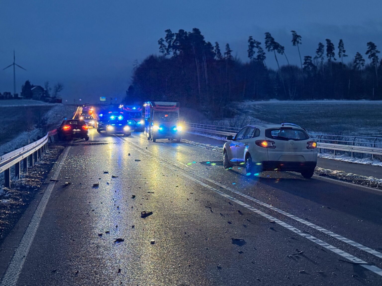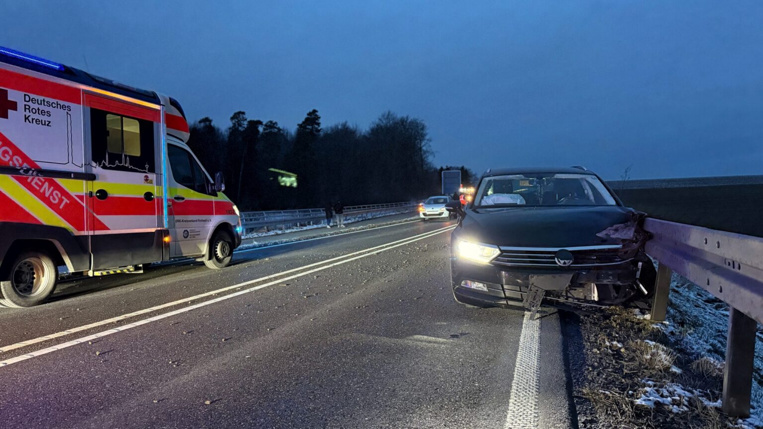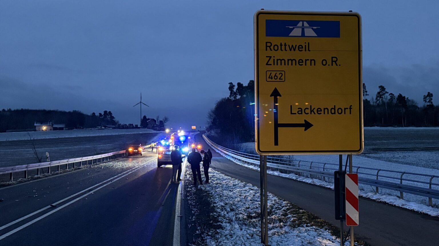 Die B 462 zwischen Rottweil und Dunningen ist nach einem Unfall mit drei Fahrzeugen am Sonntagabend vorübergehend gesperrt worden. Neben der Polizei mit mehreren Streifen sind zwei Rettungswagen im Einsatz. Die Polizei geht aktuell davon aus, dass der Unfall keine Schwerverletzten gefordert hat. Auch wolle man versuchen, die Strecke baldmöglichst wenigstens einspurig freizugeben.
