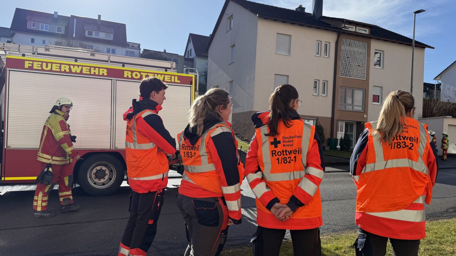 Die Feuerwehr Rottweil ist am späten Samstagvormittag zu einem befürchteten Gebäudebrand gerufen worden. Vor Ort stellte sich heraus: kein Feuer, kein Brand, keine Gefahr. Das DRK war ebenfalls mit starken Kräften vertreten.