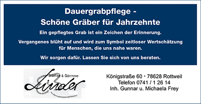 Wir trauern um folgende Mitbürger: am 01.12.2025 in Rottweil: lda Flaig, zuletzt wohnhaft OT Herrenzimmern