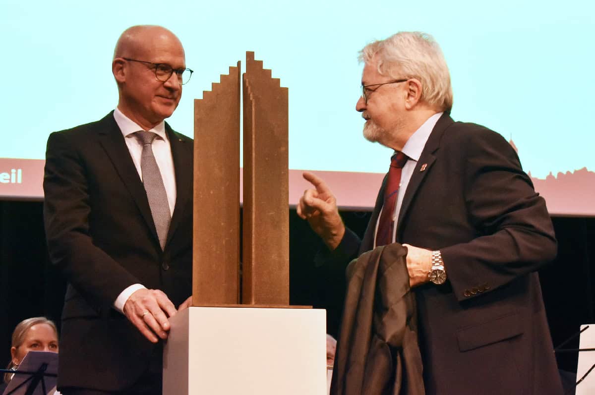 Auf der ersten Seite des Goldenen Buches unser Stadt, in dem sich in den letzten Jahren zahlreiche Staatschefs, Politiker, Künstler, Sportler, Geehrte und Repräsentanten verewigt haben, steht ein Leitspruch, der Maxime war für unser und mein Handeln: „Suchet der Stadt Bestes“ lautet dieser Leitspruch, und Max Weber würde auf die Frage, was denn Politik seiner Meinung nach ausmache, antworten: das Bohren dicker Bretter mit Leidenschaft und Augenmaß. In den letzten Jahren sind in einige dicke Bretter zusammengekommen.