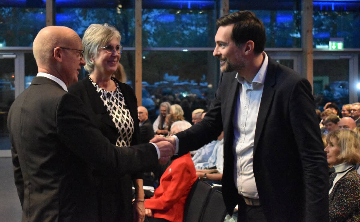Den „Tausendsassa“ Broß lobte SPD/FfR-Fraktionsvorsitzender Arved Sassnick, der für den Gemeinderat sprach. Er erinnerte auch an Widerstände – „Man konnte sogar einen Rottweiler Rechtsanwalt als Sandwichman gegen den Turm protestieren sehen“, sagte er, wobei aus dem Publikum keine Reaktion kam. Im Gegensatz zu einem Versprecher – da ging es um die Feuerwache. „Unnötig war sie schon lange“, versprach sich Sassnick – und aus dem Publikum kamen erstaunte „Oh“-Rufe. Aber so hatte es Sassnick sicher nicht gemeint, er verbesserte sich schnell.