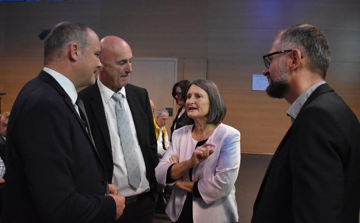 Die Festrednerin, Regierungspräsidentin Bärbel Schäfer, erinnerte an die zweite Einführung von Broß, die wegen einer Wahlanfechtung erst verspätet hatte stattfinden können. „Dafür sind wir heute mit Ihrer Verabschiedung eigentlich viel zu früh dran. Ihre Amtszeit würde regulär ja erst 2025 enden.“ Sie erwähnte die wichtigsten Vorhaben, die unter Broß’ Ägide verwirklicht oder angestoßen wurden: Testturm, Kapuziner, Hängebrücke und Landesgartenschau. Dann überreichte sie Broß die Entlassungsurkunde. „Nicht jedem Politiker ist eine so lange Amtszeit beschieden wie Liz Truss“, merkte Breuer an.