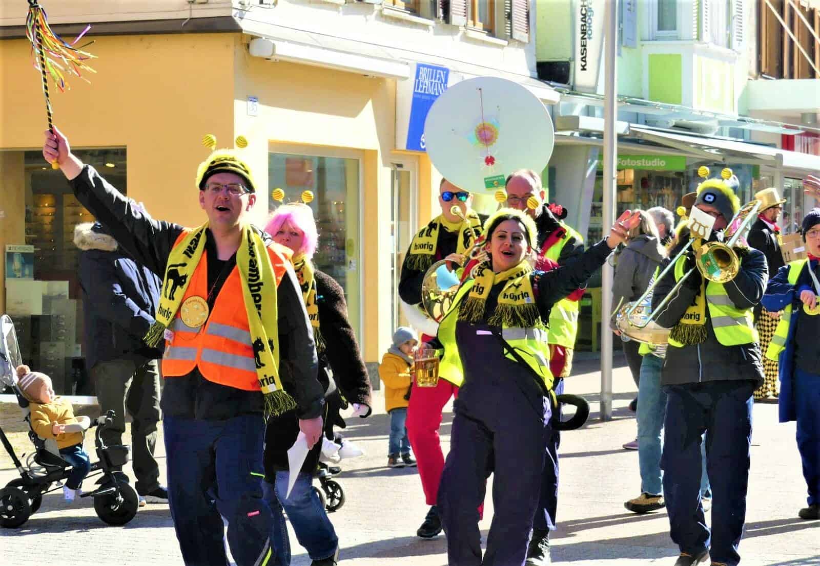 Schramberg (him) – Mit ihrem Zügle haben am Montagnachmittag die Elferräte das Publikum in der Schramberger Innenstadt unterhalten. Statt des großen Umzugs eben eine Miniversion mit Spontankapelle.