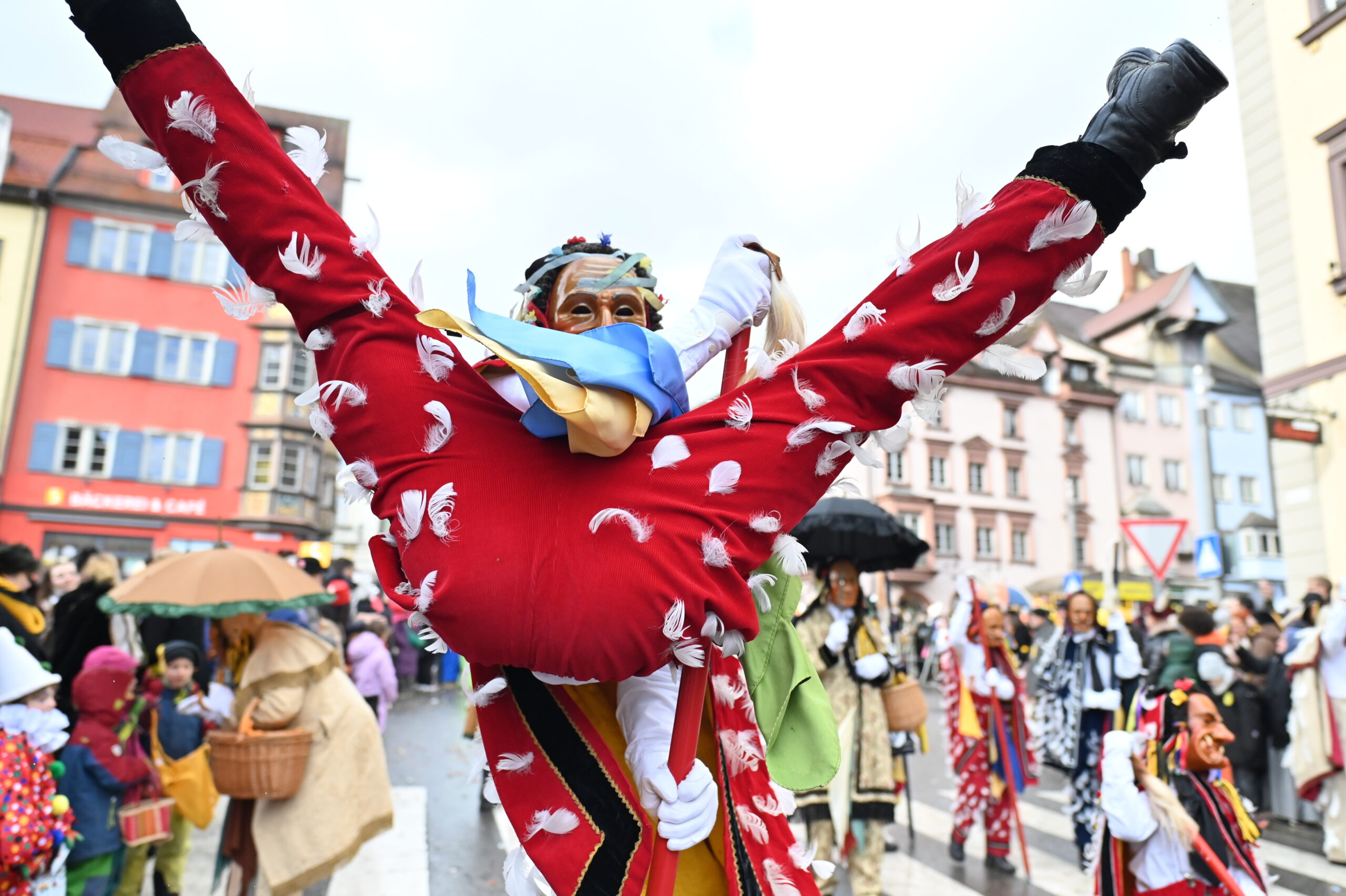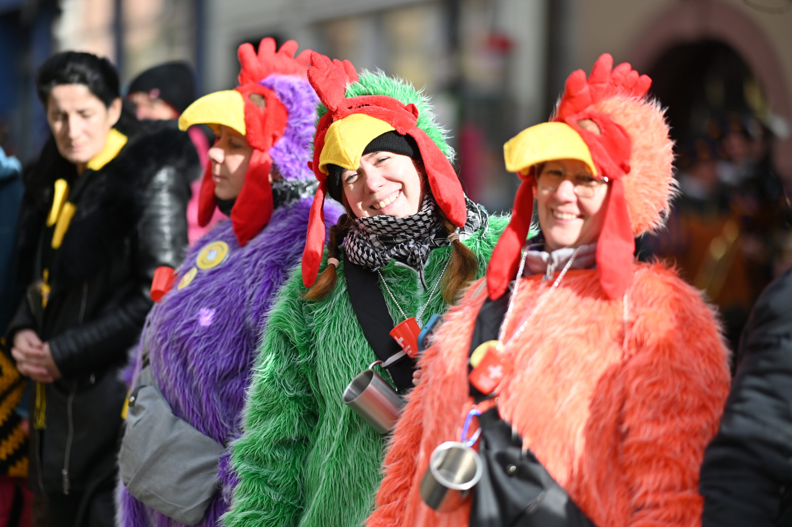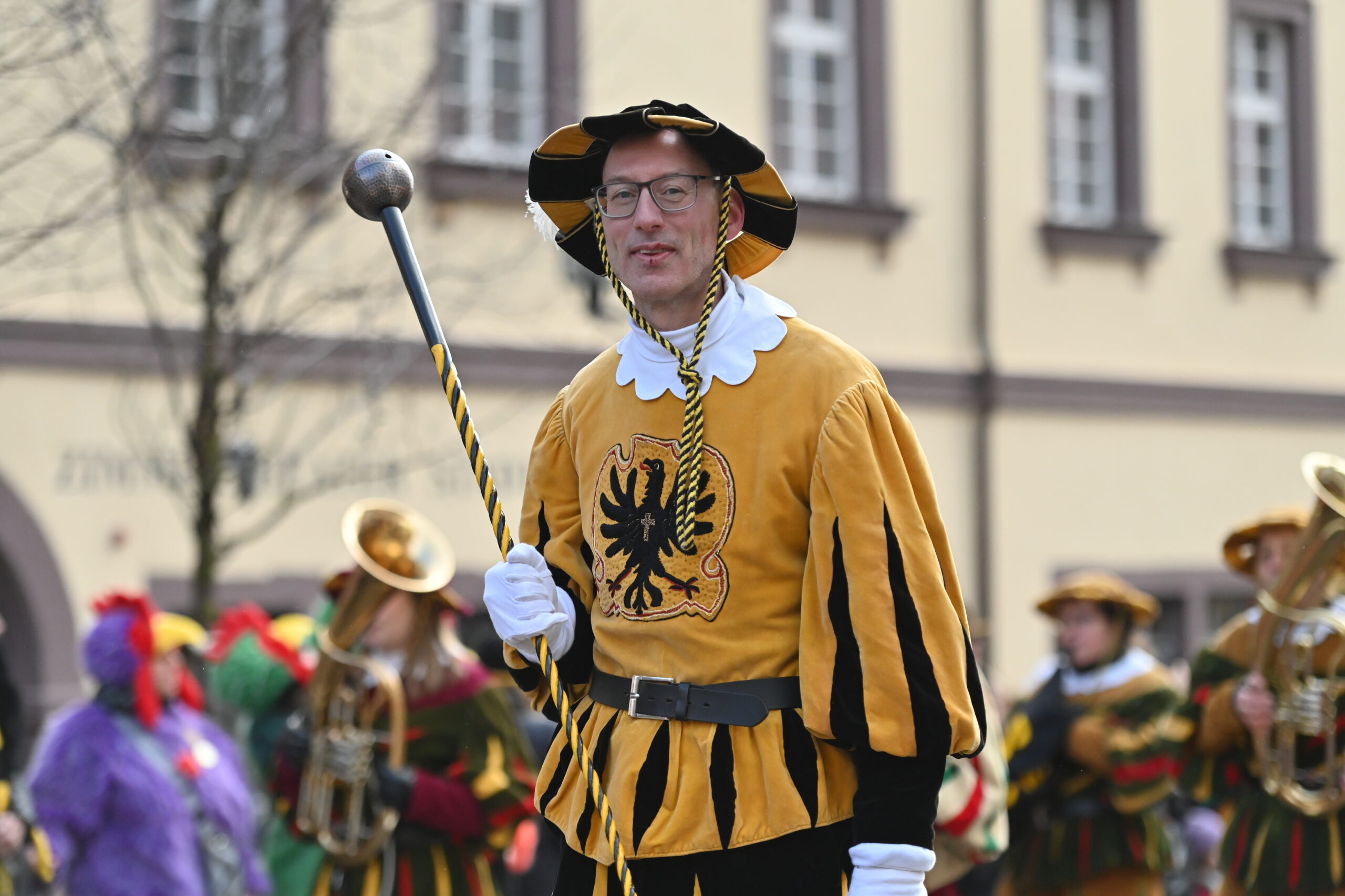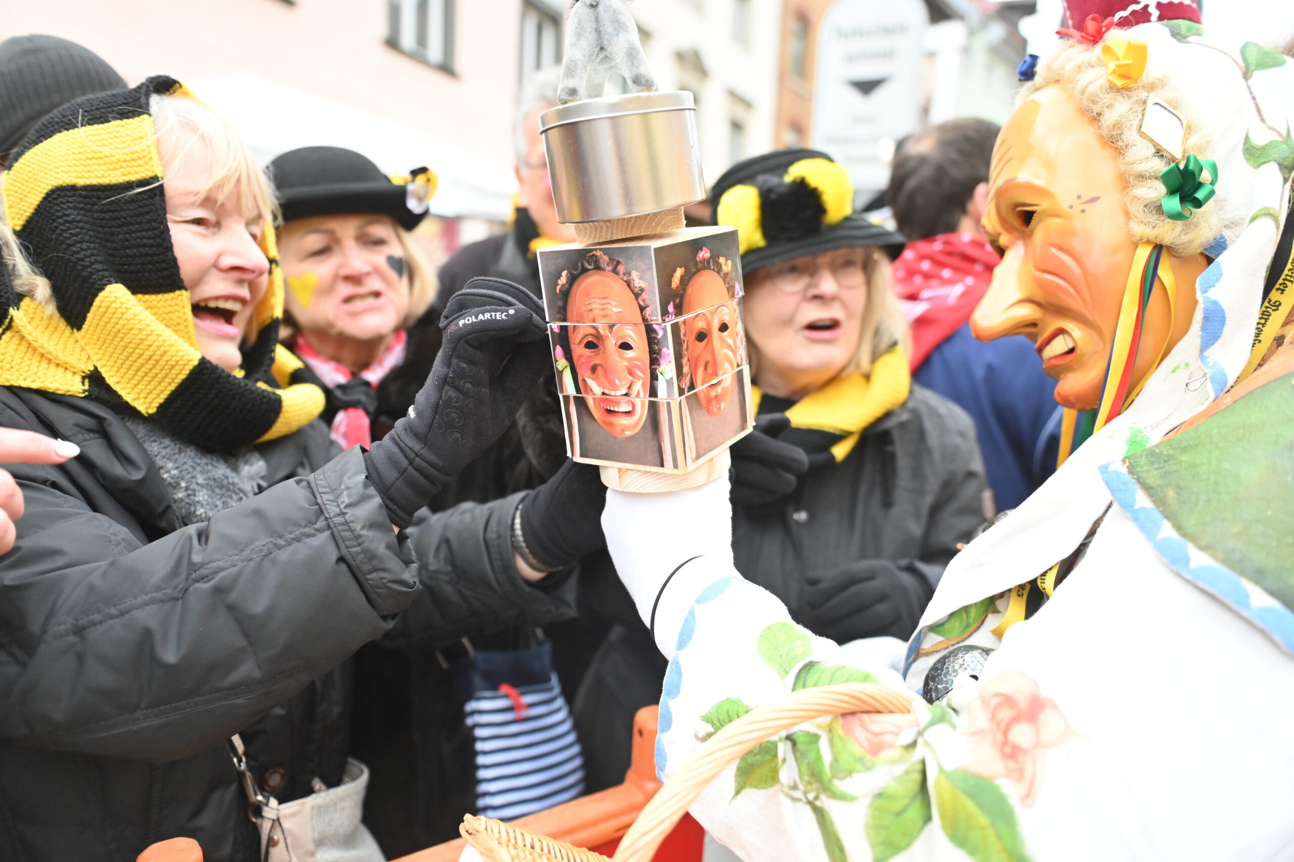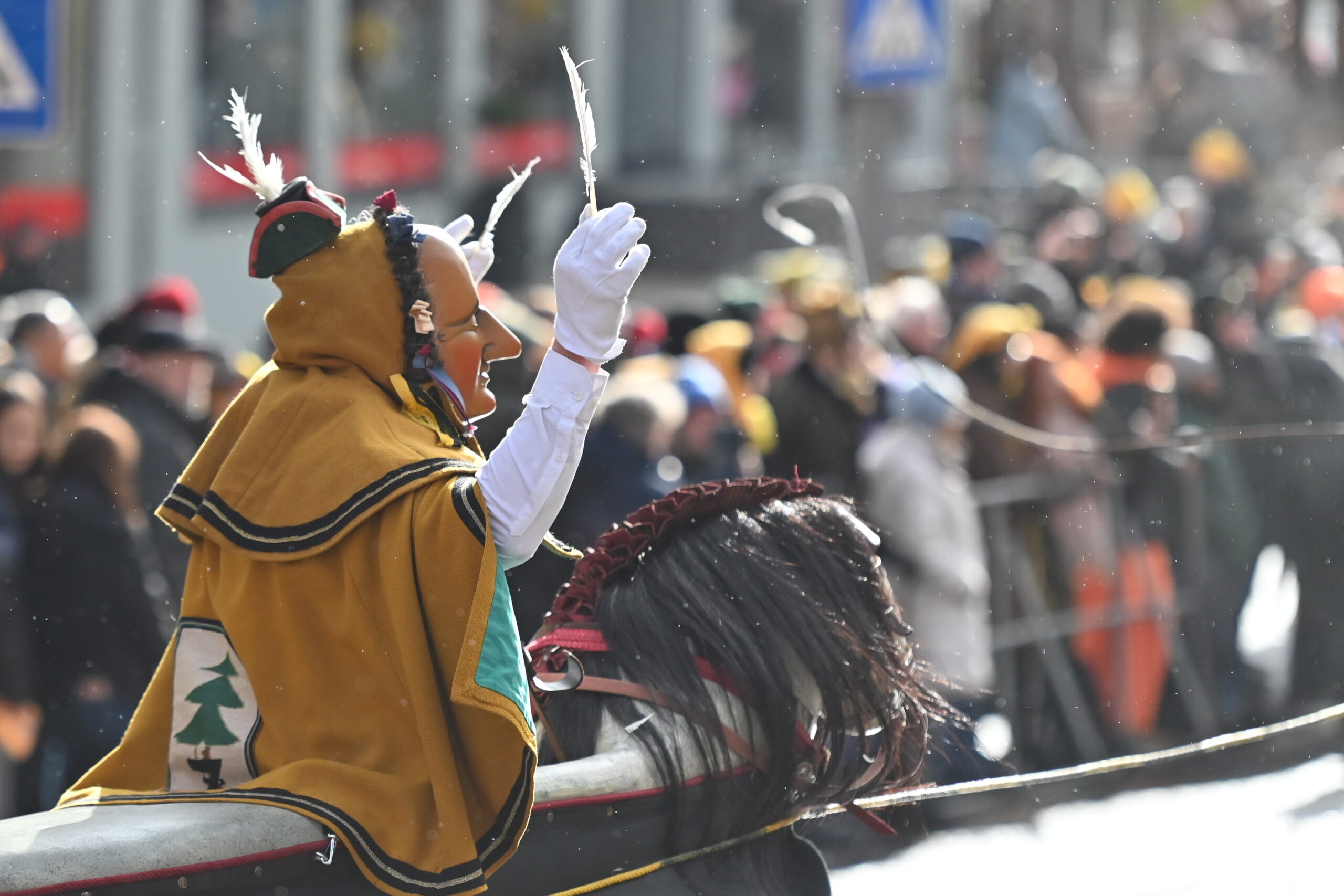 Unter grauem Himmel ging es los, eine Dreiviertel Stunde später kam dann die Sonne: Tausende Narren strömen seit dem „Achte-Schlag“ wieder durch das Schwarze Tor in Rottweil und geben sehr zur Freude des zahlreichen Publikums – einen prächtigen Anblick ab.