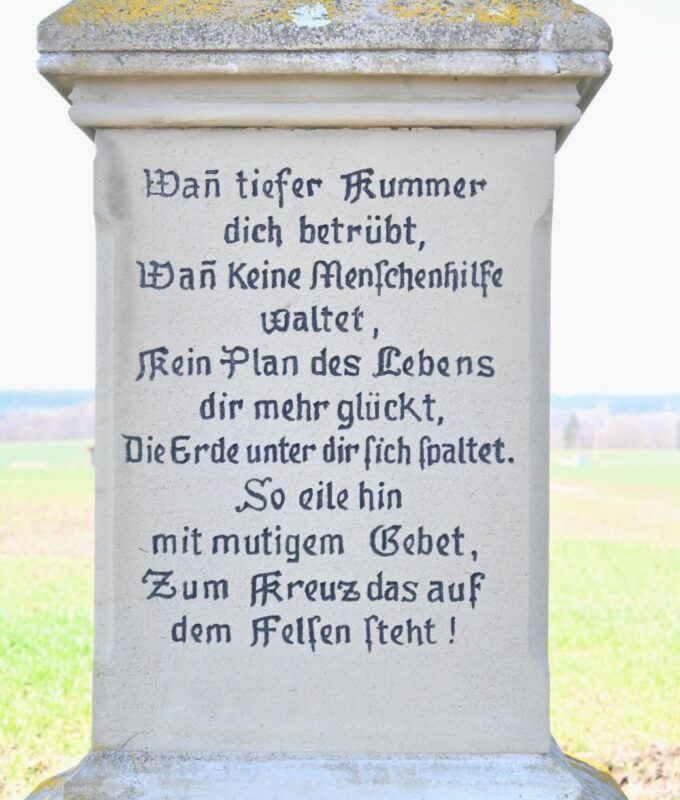 Vorrangig waren die Flur- und Wegkreuze, damals häufig gestiftet von traditionsbewussten Bauern, ein Bekenntnis zu Kirchentreue, zum katholischen Glauben und der Erlösungshoffnung. Teils waren sie Anliegen gewidmet – etwa dem Andenken Verstorbener oder dem Dank für erfahrenen Beistand in Not.