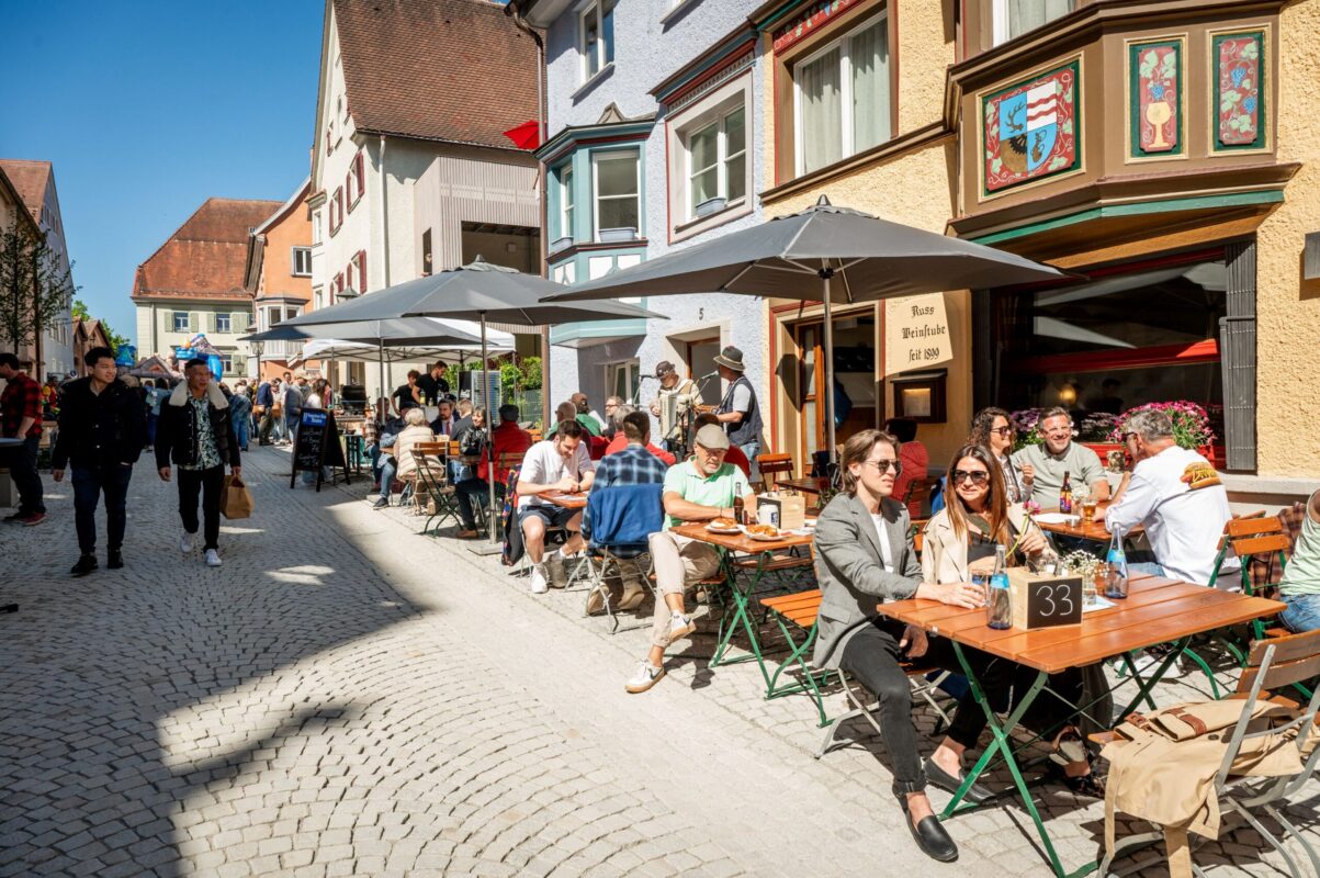 Die Bruderschaftsgasse im Herzen der historischen Innenstadt präsentiert sich nach der Sanierung rundum erneuert: barriereärmer, grüner und mit neuer Aufenthaltsqualität. Neue Sitzmöbel, Bäume und Fahrradständer laden zum Verweilen ein. Vor dem Heilig-Kreuz-Münster entstand ein neuer Platzbereich, der von der Gastronomie belebt wird. Die vom Rottweiler Büro faktorgruen geplante Oberflächengestaltung wurde im Rahmen des Sanierungsgebiets „Stadtmitte“ mit Mitteln der Städtebauförderung von Bund und Land unterstützt.