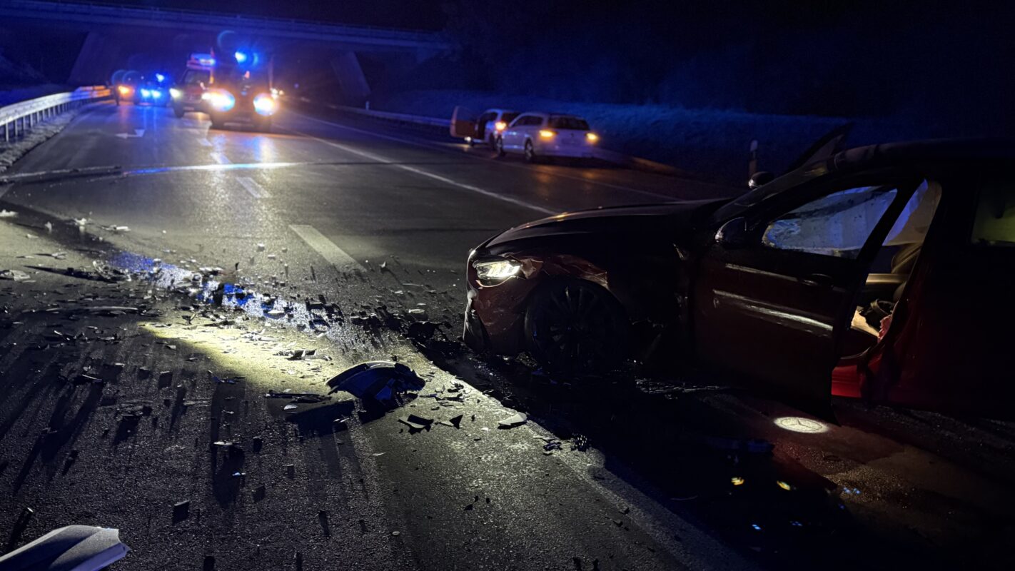 Drei Rettungswagen sind vor Ort – es gibt nach Angaben der Polizei zwei Verletzte. Eine Person wurde schwer, eine glücklicherweise nur leicht verletzt, so erste Informationen vor Ort.