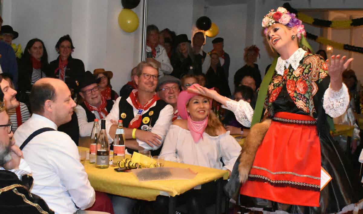 Auf das sechsköpfige Ensemble folgte eine Solistin, die sich dann „O je wo isch mei Grupp“ benannte. Sie wollte sich als Wirtschaftsförderin bei der Stadt bewerben. „Frauen ins Rößle“, forderte sie – und meinte damit, die gleichnamige Kneipe zum Frauen-Café zu machen (was denn sonst…).