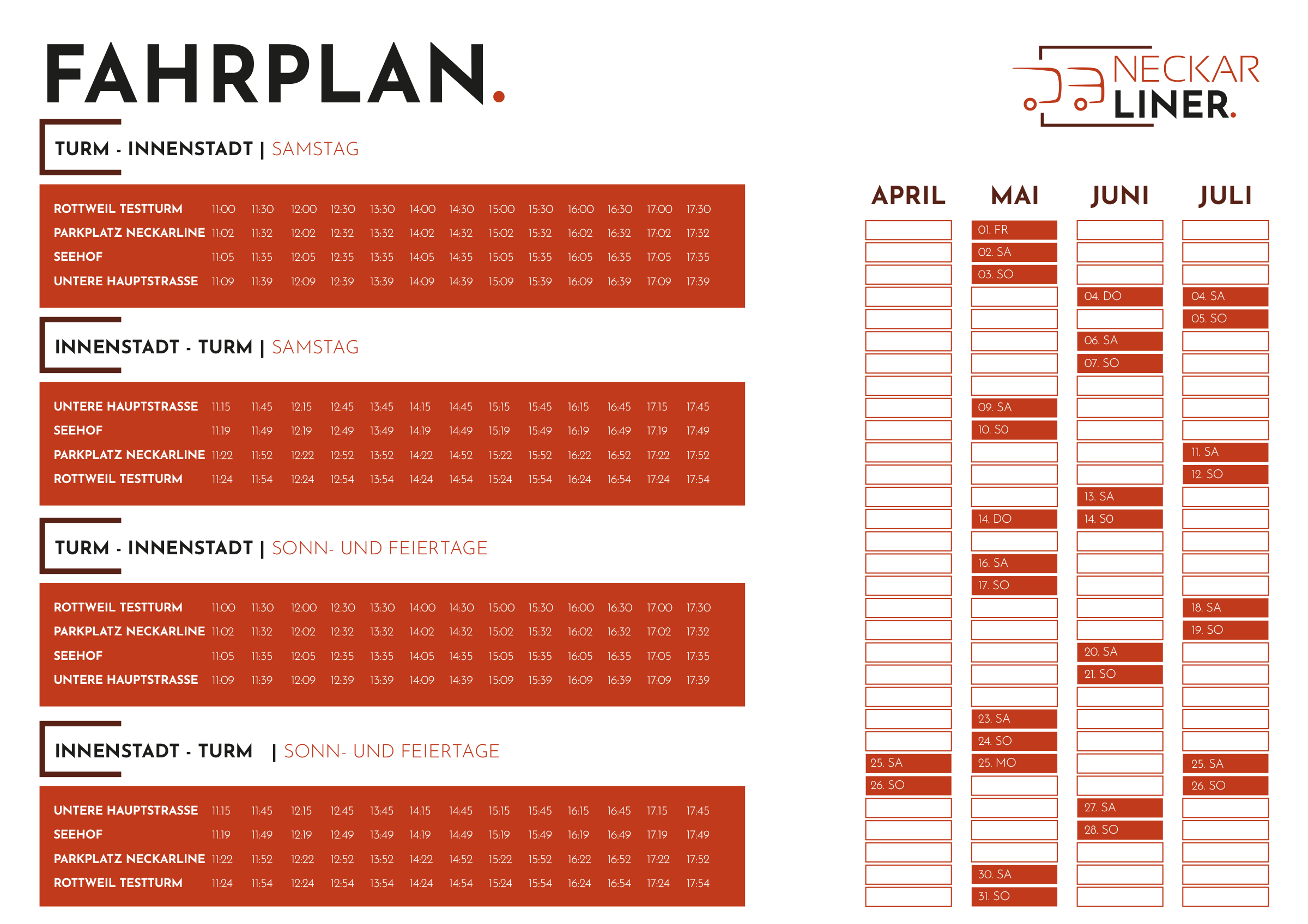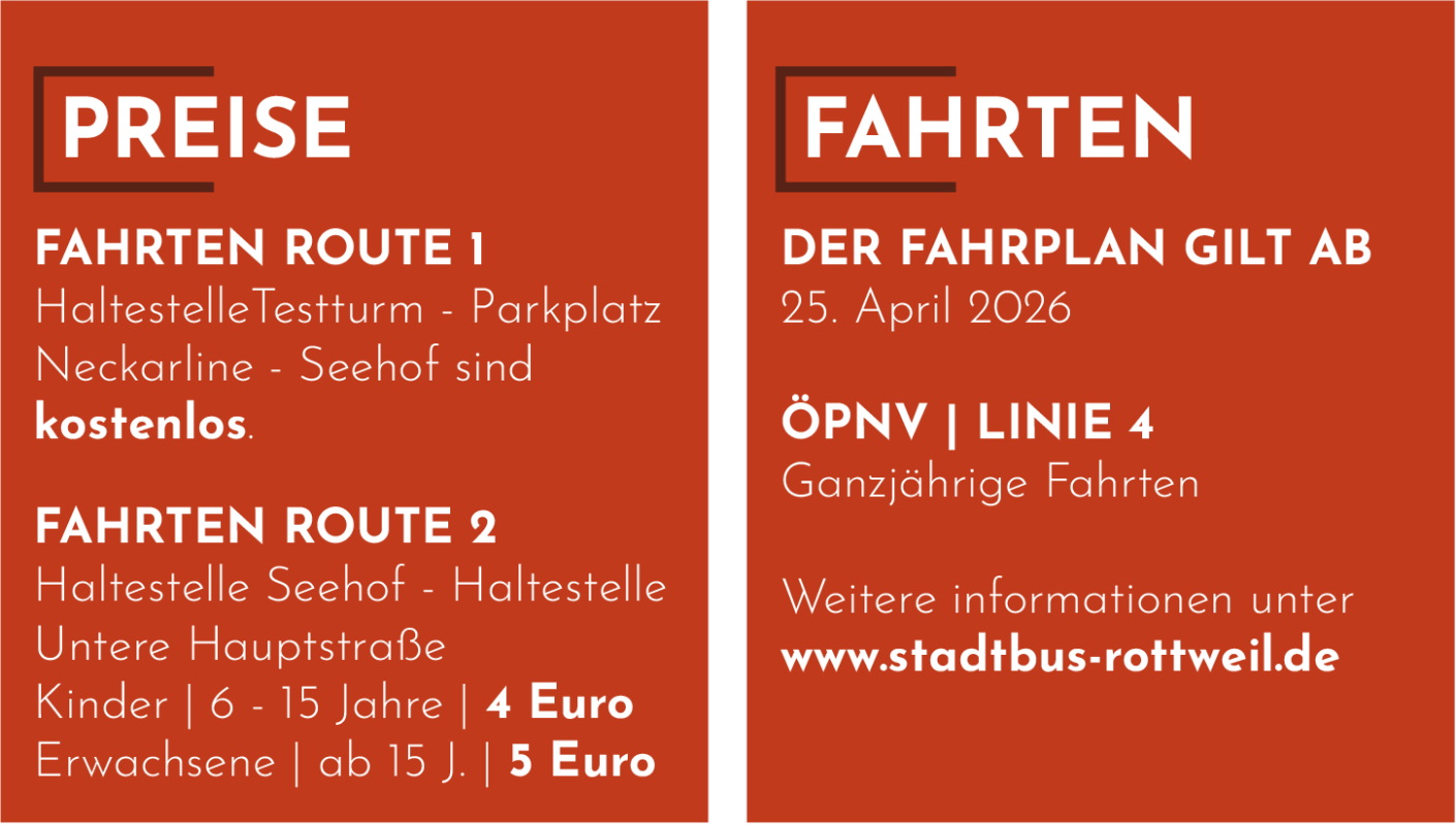 Die Verbindung zwischen Testturm und Hängebrücke ist kostenlos. Für Fahrten ab der Haltestelle „Seehof“ werden fünf Euro für Erwachsene und vier Euro für Kinder zwischen sechs und 14 Jahren fällig. Der „Neckarliner“ fährt ab dem Eröffnungswochenende jeweils samstags und sonntags im Halbstundentakt zwischen 11 und 18 Uhr.