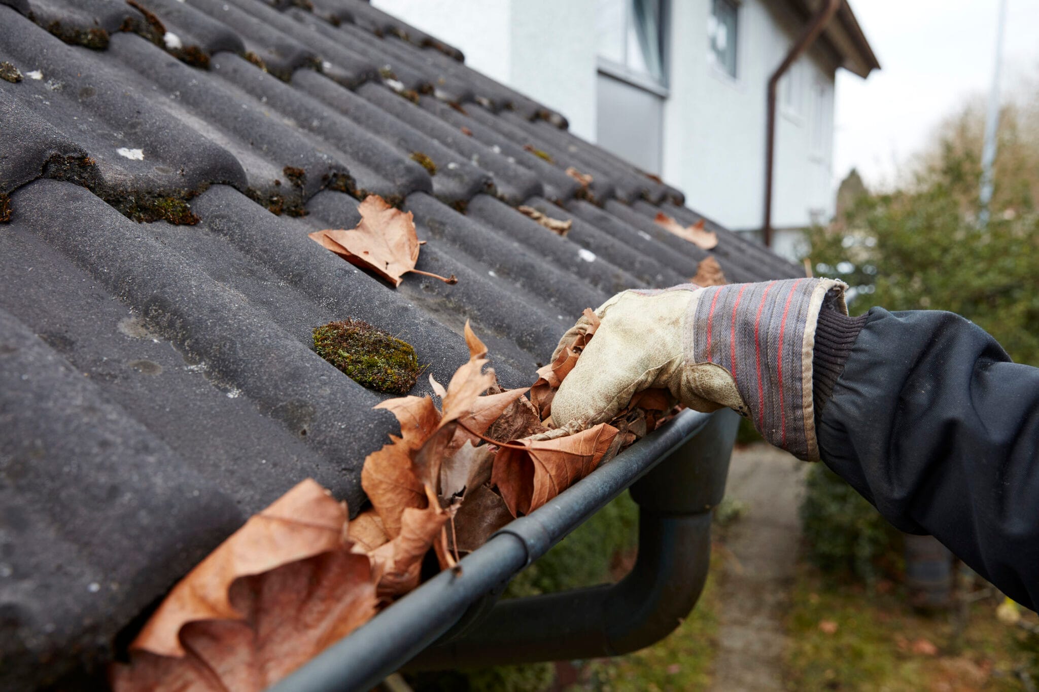 3. Verstopfte Dachrinnen und Fallrohre sollten vor dem Winter gründlich vom Herbstlaub befreit werden. Deckt die Reinigung Risse in den Dachrinnen auf, können diese ganz einfach mit Silikon abgedichtet werden. Durch Frost werden die Schäden sonst noch größer, schlimmstenfalls droht im Frühjahr die Erneuerung der kompletten Dachentwässerung.