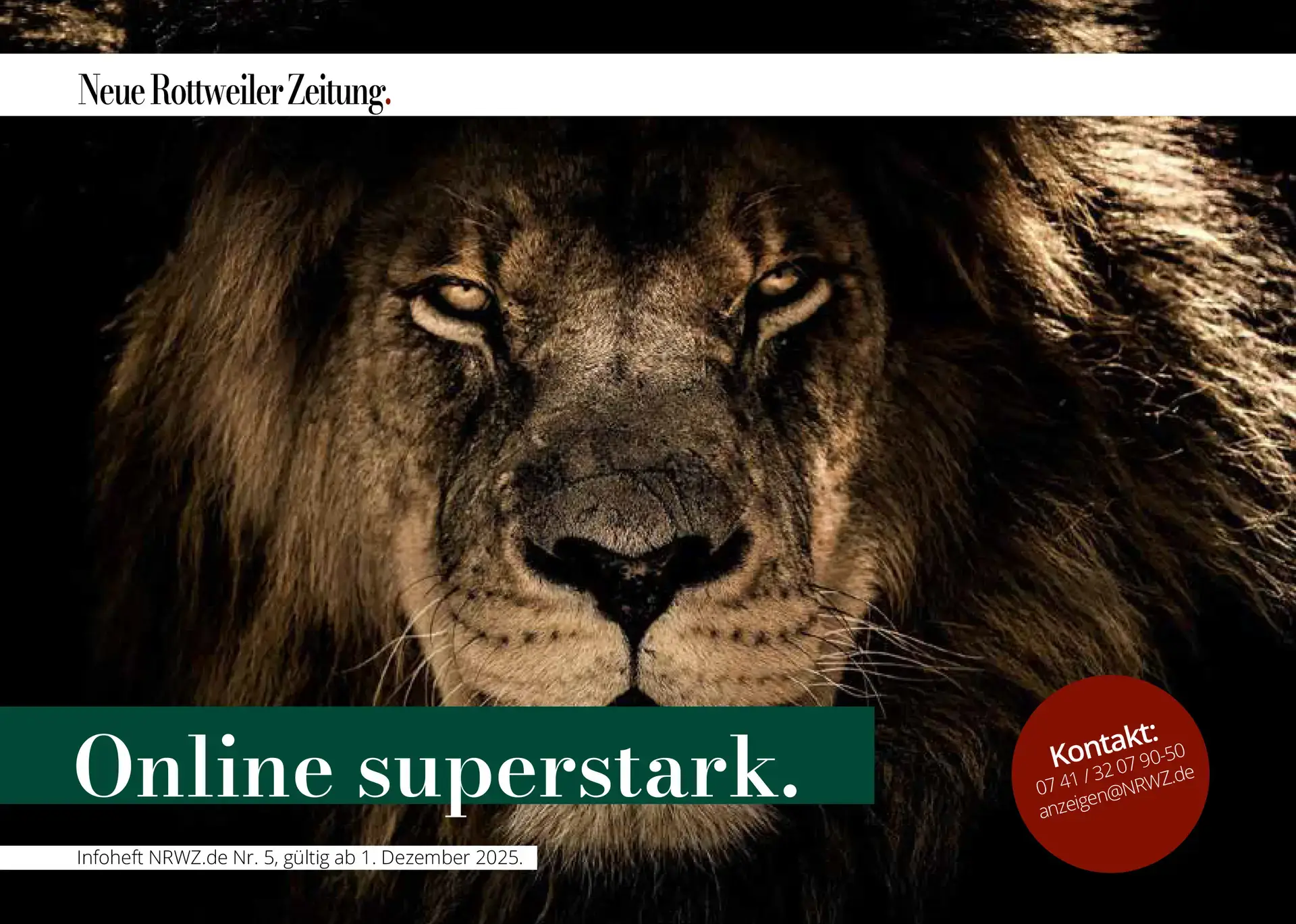 Die NRWZ ist online superstark. Auf www.NRWZ.de finden sich täglich aktuell Nachrichten aus Rottweil, Schramberg und der Region, verfasst von einem erfahrenen Redaktionsteam. NRWZ.de ist eines der schnellsten Medien vor Ort. Haben Sie Fragen? Oder wollen Sie mit Unterstützung unseres Verkaufsteams buchen? Dann senden Sie uns bitte eine E-Mail an anzeigen@NRWZ.de