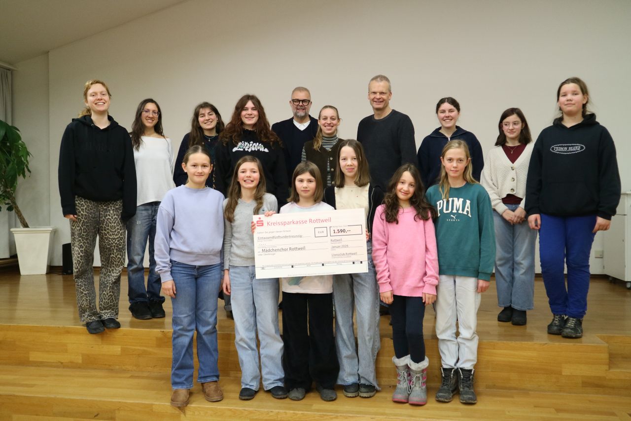 Einen Scheck mit 1590 Euro überreichte Harald Sailer, Präsident des Lionsclub Rottweil, am Freitag dem Mädchenchor Rottweil.