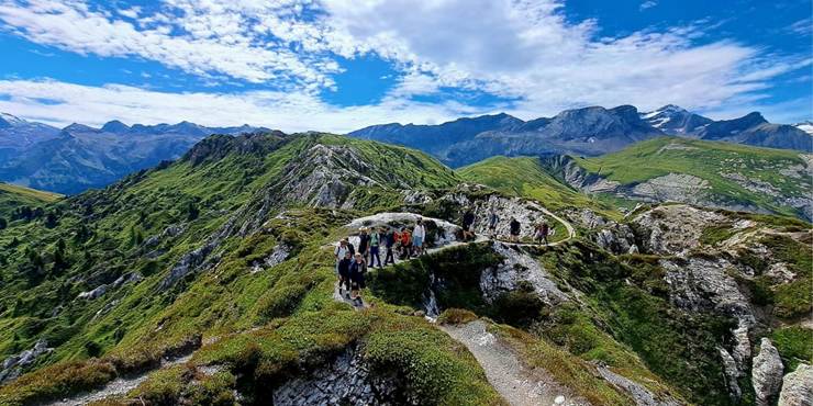 Einzigartig war in diesem Jahr auch der Wandertag, bei dem die Schönheit der Schweizer Berge nochmal richtig erkundet werden konnte. Nachdem alle mit der Gondel die ersten Höhenmeter gutgemacht hatten, erhielten zwei der drei Wandergruppen dann exklusive Informationen und Einblicke von einem Wanderführer, der einen Teil der Tour begleitete. Neben Kühen und Murmeltieren gab es bei bestem Wanderwetter auch wunderbare Ausblicke zu sehen.