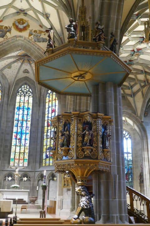 Rottweil – Am Schalldeckel über der Kanzel des Heilig-Kreuz-Münsters in Rottweil schwebt eine Taube. Sie ist ein Zeichen des Heiligen Geistes, der im Zentrum des Pfingstfestes steht.