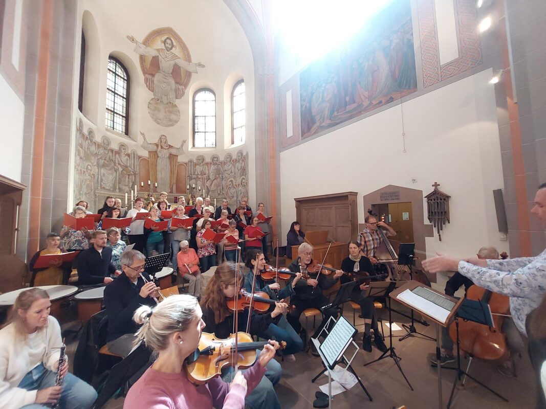 Als Gesangssolisten wirkten Alice Fuder-Kopf (Sopran), Kira Bujard (Alt), Andreas Linsenmann (Tenor) und Jochen Hermann (Bass) mit. Monika Siegel spielte das Orgelpositiv, Klaus Bauer die große Orgel. Im abschließenden monumentalen „Großer Gott“ verbanden sich die zahlreichen Gottesdienstbesucher, Chor und Orchester zu einem kraftvollen Lobgesang, der durch das offene Portal der Pelagiuskirche weithin zu hören war.