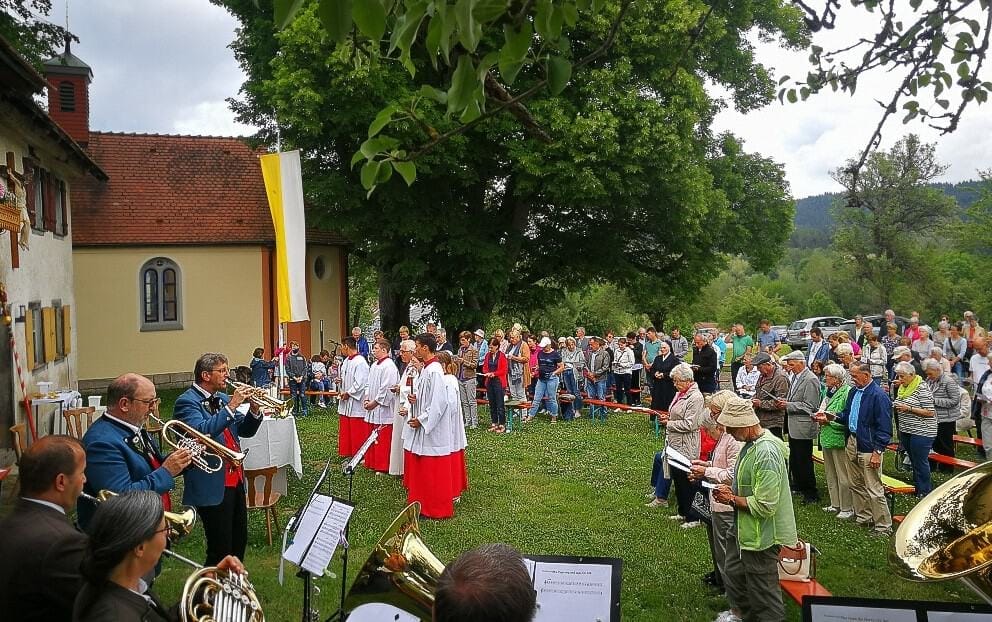 Im Schatten der vor zwei Jahren grundlegend neu gestalteten Kapelle zelebrierte Pfarrer Albrecht Zepf die Messe und wurde von Lektoren und Kommunionhelfern aus verschiedenen Pfarreien sowie Irslinger Ministranten unterstützt. Für eine würdige musikalische Gestaltung sorgten ebenfalls Musiker aus allen zugehörigen Pfarreien.