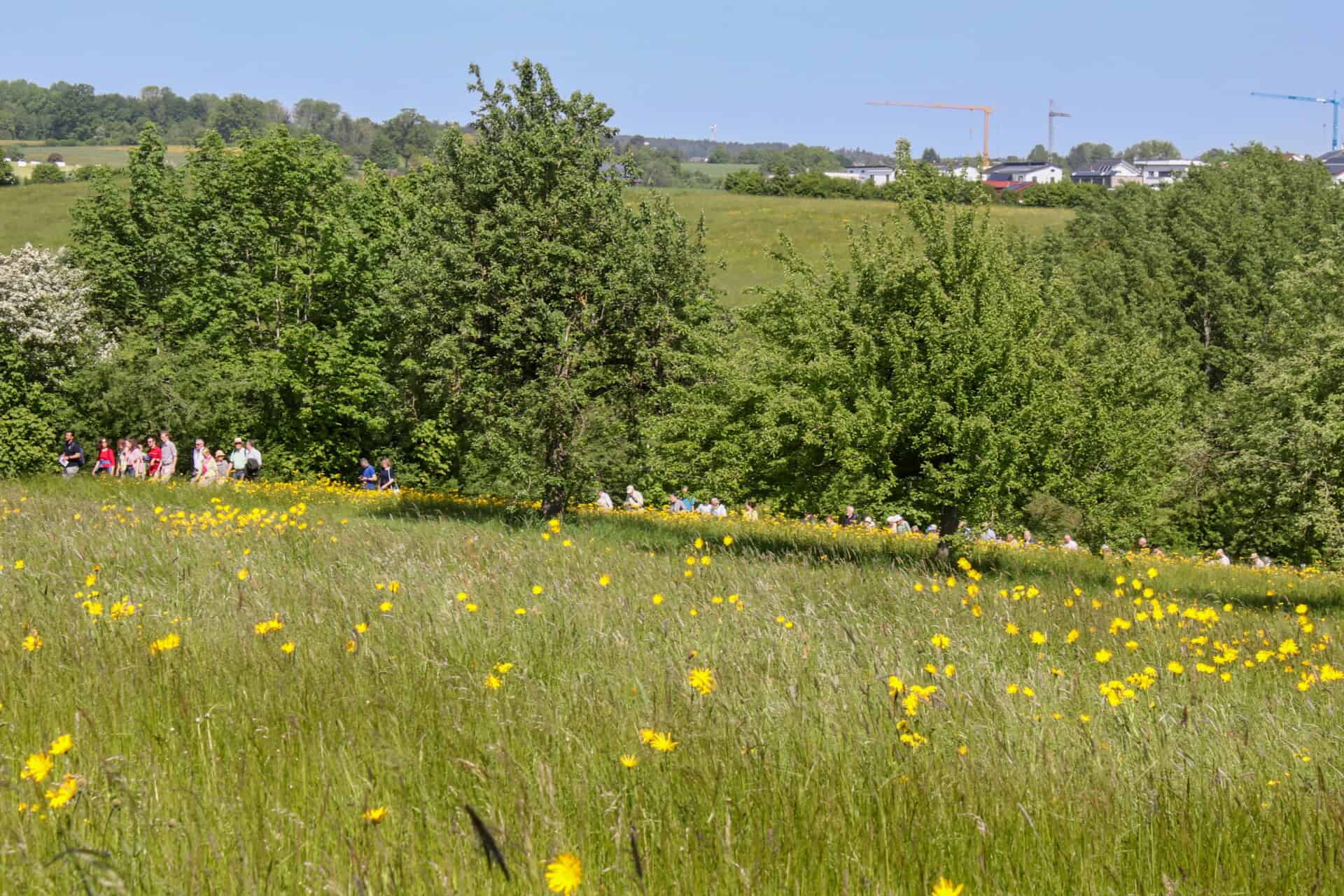 Die erste Station war an der Auferstehung-Christi-Kirche. Dort versammelte man sich zur Liturgischen Eröffnung und Begrüßung. Über den Holdersbach ging es hinauf zum Margarita-Linder-Weg. Dort wurde am Wegkreuz an der 2. Station der Wortgottesdienst gefeiert.