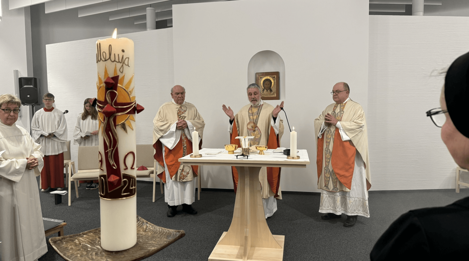 Schramberg-Heiligenbronn. Generaloberin Sr. M. Dorothea begrüßte den Weihbischof und die Mitfeiernden ganz herzlich. Im Gottesdienst wurde dann Licht in das Dunkel gebracht, in dem die Osterkerze – das Licht Christi symbolisierend – entzündet wurde.