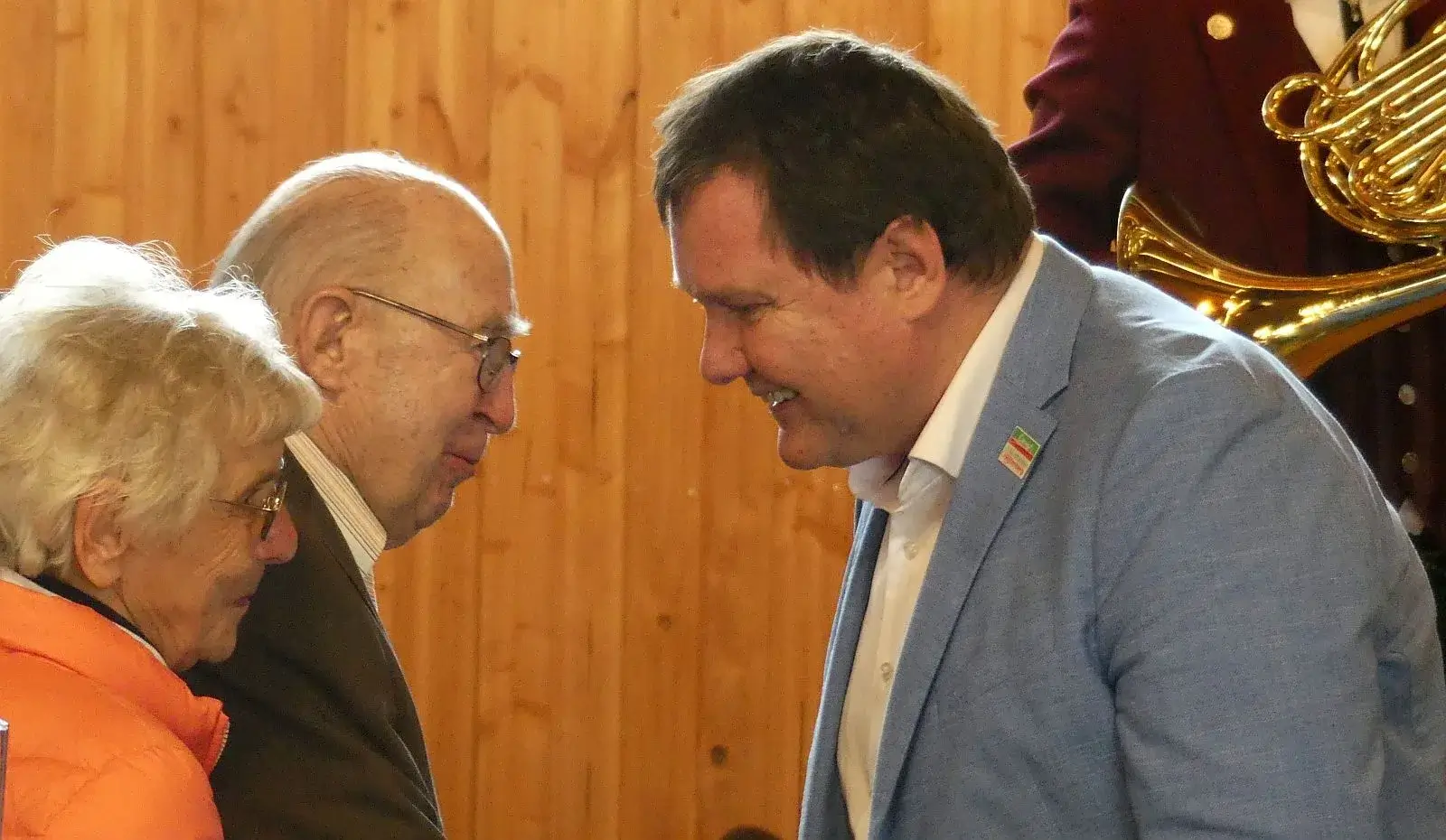 Lehrer selbst und seine Frau allerdings hatten noch lange viel Hände zu schütteln, bevor sie selbst mitfeiern konnten. Zunächst kamen die Glückwünsche von seinen Amtskollegen, dann von seinen Vorgängern Reinhold Kühner und Ekkhard Sekinger, den Feuerwehrleuten, Pfarrer Christian Albrecht, Sportlerinnen und Sportlern, den Musikerinnen und Musikern und und und.