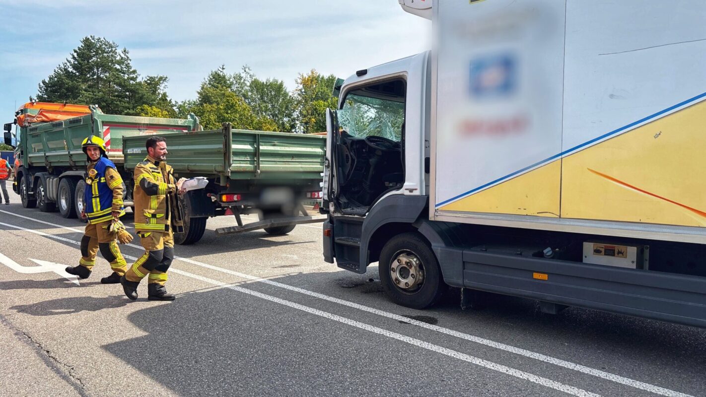 Auffahrunfall zwischen zwei Lkw bei Rottweil: Ein Fahrer schwer verletzt