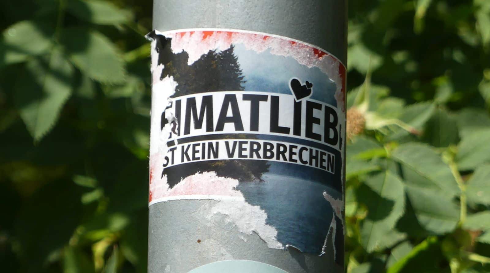 Erstaunlich allerdings sind eine Vielzahl von Aufklebern, die dort oben am Aussichtshäusle aber auch in der Stadt an Laternenpfählen, Mülleimern und Geländern kleben. Darauf steht „Heimatliebe ist kein Verbrechen.“