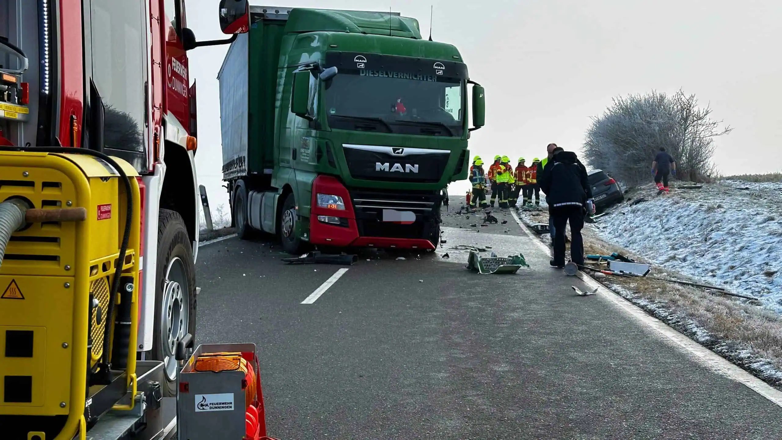 Auto und LKW prallen auf Kreisstraße zusammen: zwei Fahrerinnen verletzt