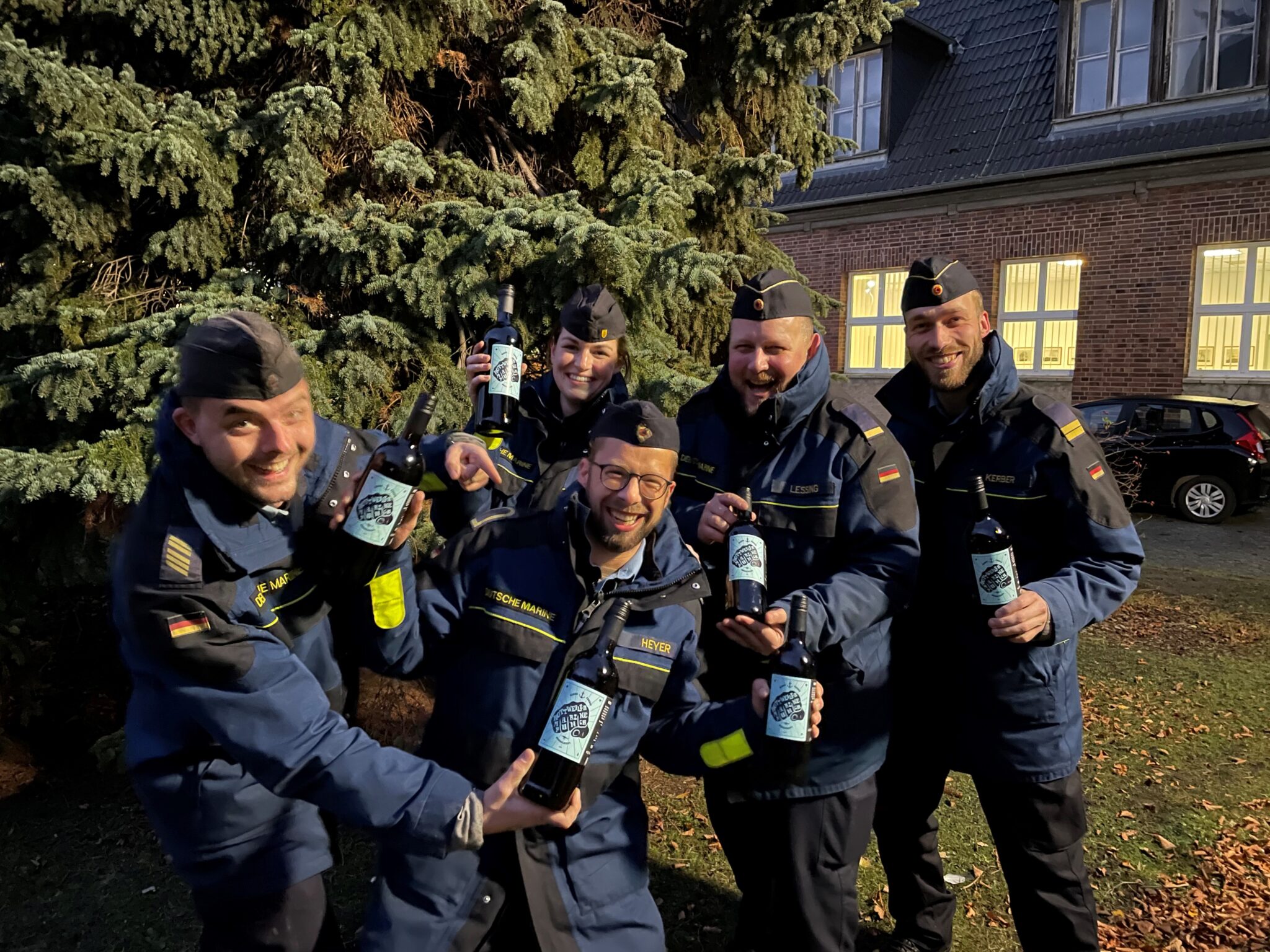 Weinhändler Michael Grimm sorgte zunächst dafür, dass es auch in dieser Corona-Zeit Ersatz-Punsch gibt. Dieser ist vergangenen Samstag dann auch allzu schnell ausverkauft gewesen. Nachschub wurde geordert. Damit aber auch die Marinesoldaten nicht leer ausgehen, hat Grimm ihnen einige Flaschen des Punsches, der dieses Jahr „Punch“ heißt, zukommen lassen. Die Freude darüber war ganz offensichtlich groß.