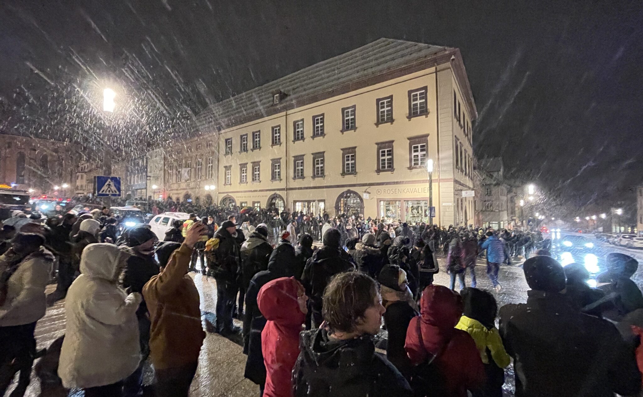 Das Ziel der Demonstranten sei es von „Anbeginn“ an gewesen, „zwar lautstark, aber friedlich zu demonstrieren“, heißt es weiter. „Beides ist uns gelungen, worauf wir trotz aller Kritik besonders stolz sind.“ Sie ließen sich weder von aufgestellten Kerzen von ihrem montäglichen Tun abbringen, noch von geschwungenen Peitschen zur Fasnetszeit. Die Polizei, die zwischenzeitlich ihre liebe Not hatte mit drohenden Ausschreitungen in der Stadt, erhält ebenfalls „ein Dankeschön … für das (fast) ausschließlich vertrauensvolle Zusammenwirken“.