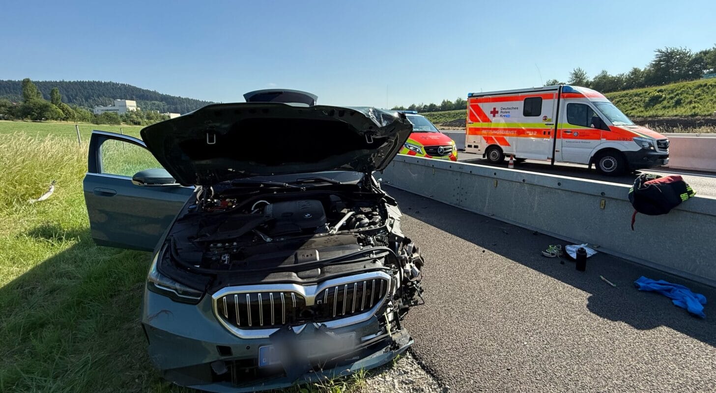 BMW rast auf A 81 in Baustellen-Planke – zwei Leichtverletzte