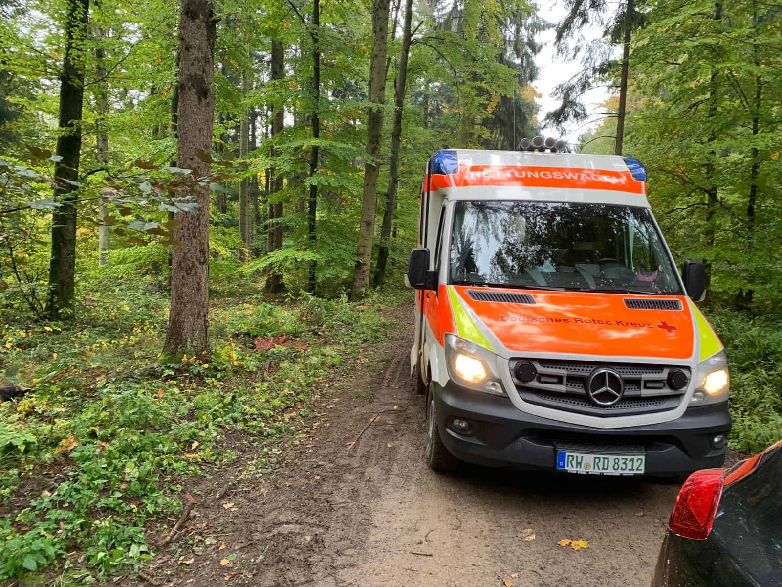 Das Einsatzstichwort lautete auf Rettung aus unwegsamem Gelände. Der Einsatzort befindet sich in einem Waldstück zwischen Deißlingen und Niedereschach, unterhalb der Red Stone Ranch.