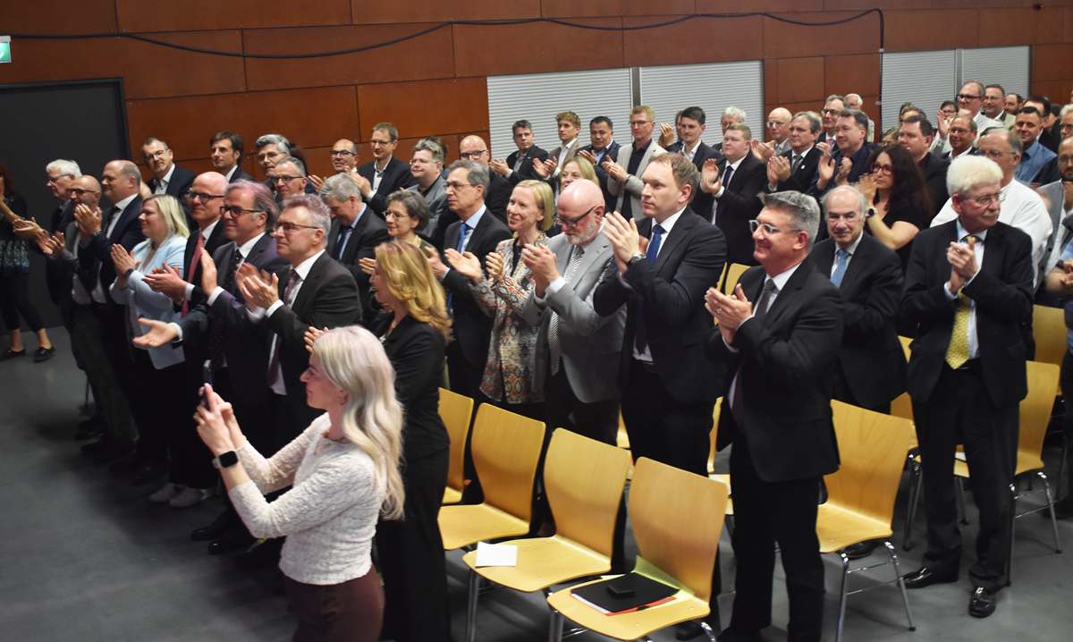 Langer Beifall im Stehen am Ende: Landrat Dr. Wolf-Rüdiger Michel wurde am Montagabend im Sulzer Backseinbau von vielen Wegbegleitern und Freunden in den Ruhestand verabschiedet.