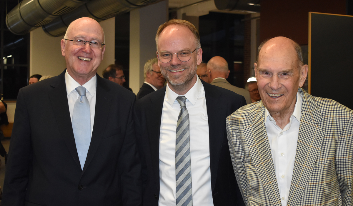 Im Anschluss gab es noch einen Stehempfang. Viele Gespräche und Begegnungen gab es. Unter ihnen auch Manfred Autenrieth, vor Kurzem 89 Jahre geworden. Sie repräsentieren zusammen, wenn man so will, 61 Jahre an der Spitze des Landkreises: Autenrieth war 29 Jahre im Amt, Michel 24. Und Keckeisen ist für acht Jahre gewählt.