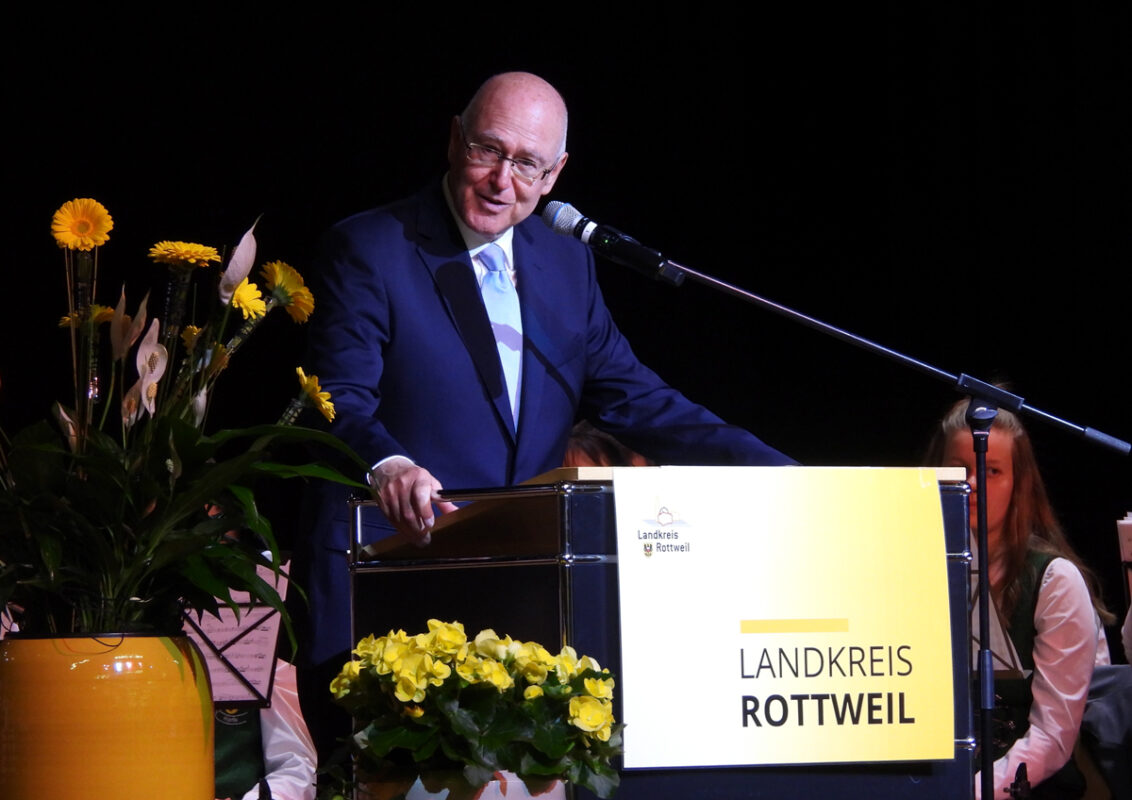 Kreis Rottweil/Sulz – Michels Stellvertreter Hermann Kopp brauchte geraume Zeit, um alle Ehrengäste zu begrüßen – Gäste, die Michel die Ehre erwiesen. Jetzige und ehemalige Abgeordnete, Landrats-Kollegen nicht nur aus angrenzenden Kreisen, der Regierungspräsident samt seinem Vize, aber auch Michels Vorgänger Manfred Autenrieth hatten sich in der Sulzer Stadthalle versammelt. Um nur diese zu nennen.
