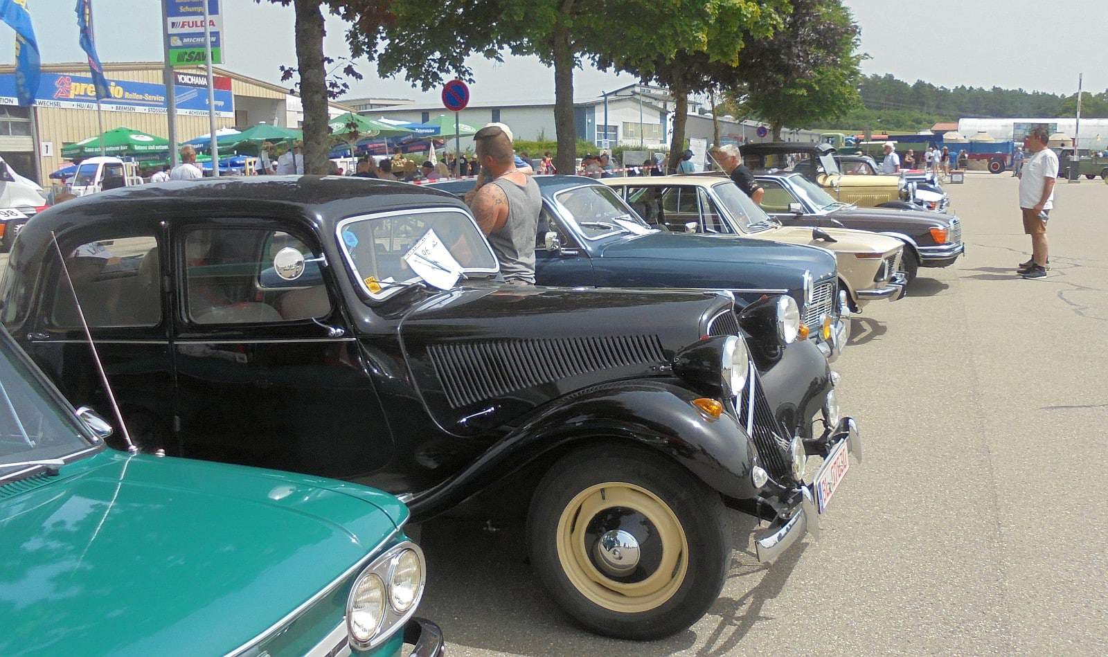 Seedorf. Bevor es um 14 Uhr bei brütender Hitze losging, versammelten sich die Teilnehmerinnen und Teilnehmer auf einem großen Firmenparkplatz. Vom klassischen Oldtimer aus der Frühzeit des Automobils bis zu Youngstern wie Opel Kadets aus den 80er Jahren war alles vertreten.