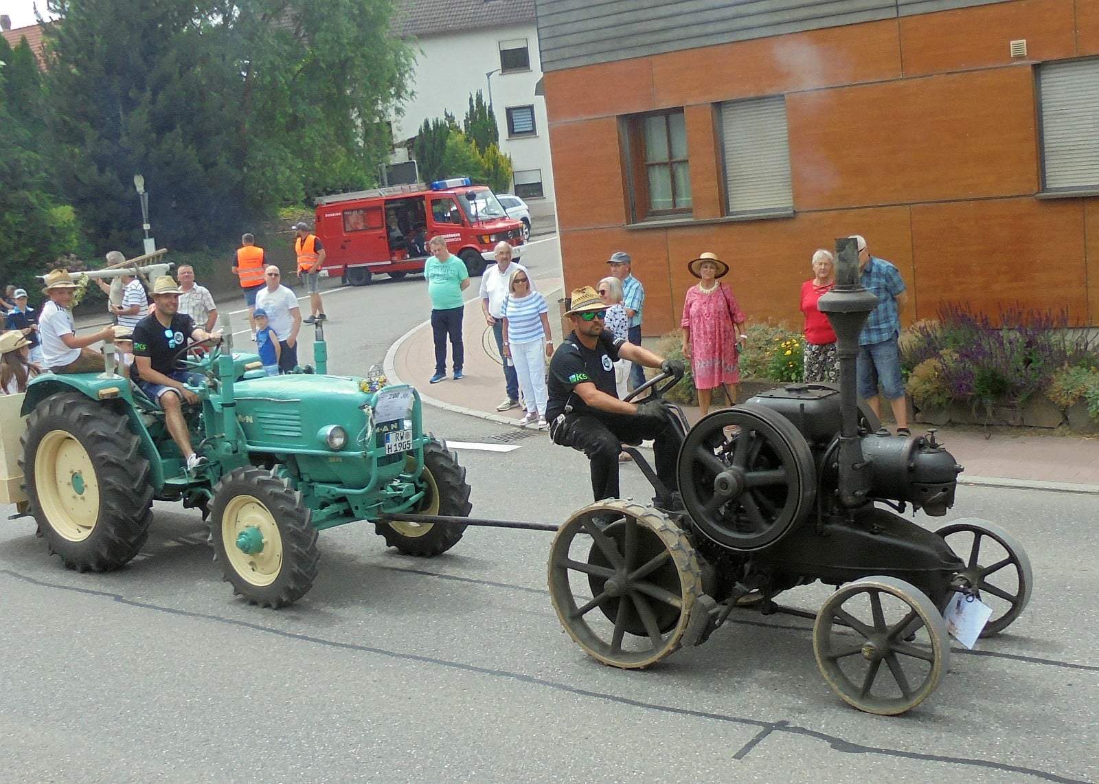 Auf einem großen Lastwagen (Baujahr 1976) kam der Musikverein Seedorf musizierend vorbeigefahren. Weil in diesem Jahr der Lanz Eisen-Bulldog der Familie Hangst aus Seedorf 100 wird, kamen sehr viele schwarze Rauchwolken ausstoßende Lanz-Bulldogs die Freudenstädter Straße entlang geknattert.