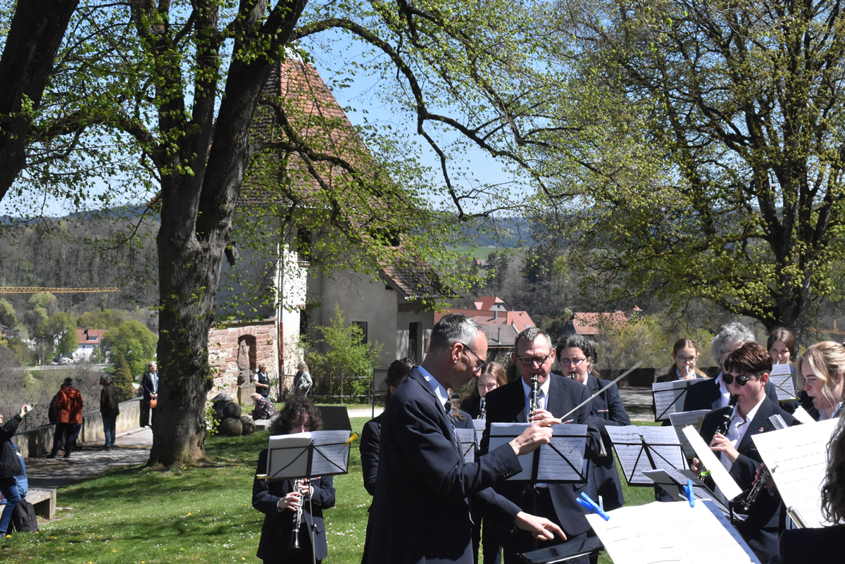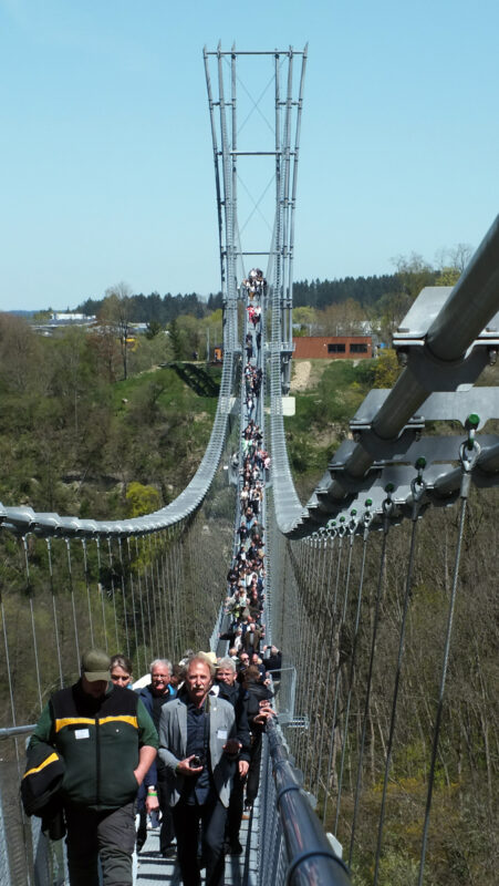 Die erste „Prozession“ über die Rottweiler Fußgänger-Hängebrücke ist gelaufen: Heute Mittag kamen die ersten paar hundert Menschen am Bockshof an. Sie waren Gäste bei der formellen, wenn auch nicht öffentlichen Einweihung des Bauwerks.