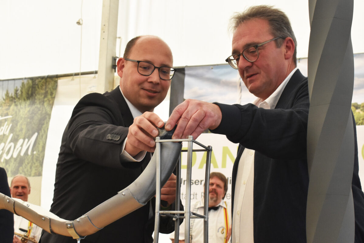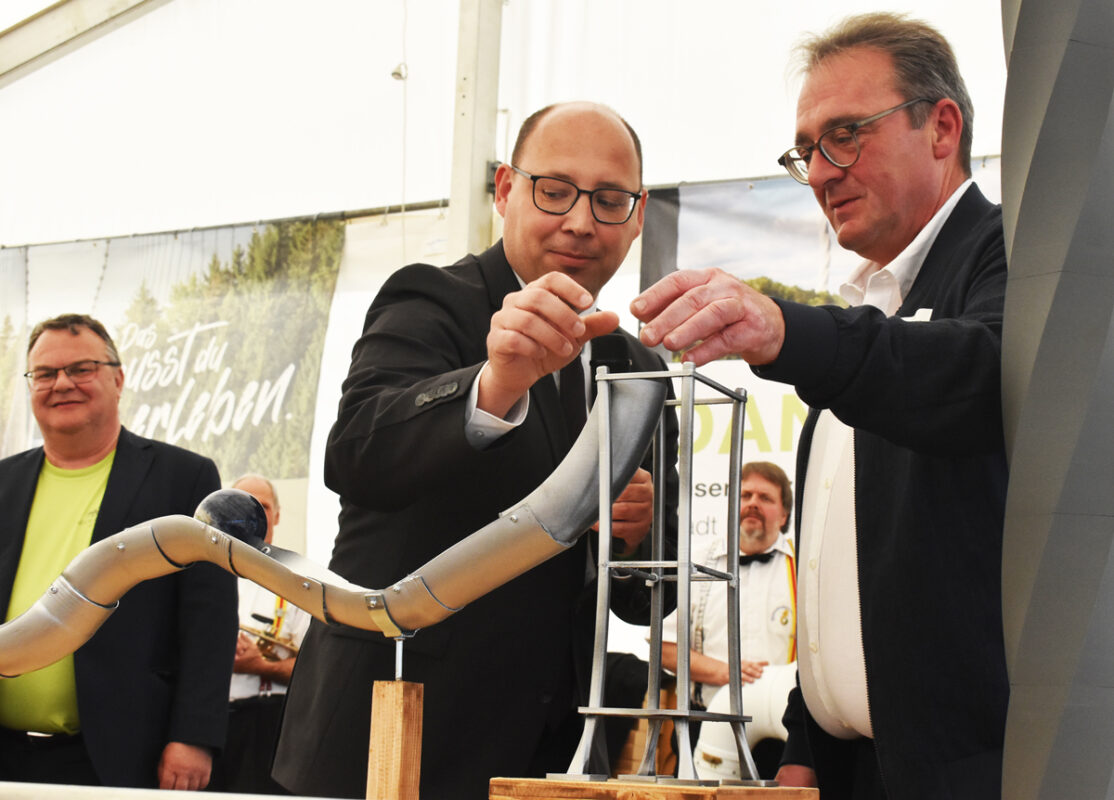 Rottweil – Zurück bis in seine Kindheit führte Bauherr Günter Eberhardt die Zuhörer im gut gefüllten Festzelt. Denn Eberhards Faible für Brückenbau begann ganz in der Nähe von Rottweil, wie er in seinem echt Oberländer Schwäbisch berichtete. Urlaub im Ausland sei vor 50 Jahren für den Buben noch nicht drin gewesen. Aber nach den Ferien-Wochen bei Onkel und Oma habe es einen Abenteuer-Urlaub gegeben, an der Baustelle der Autobahn-Brücke bei Villingendorf. Das „Urlaubs-Highlight“, wie er berichtete. Hier war sein Vater beschäftigt. Und für den kleinen Günter begann hier die Leidenschaft für Brücken, fürs Bauen, aber auch für die Natur.