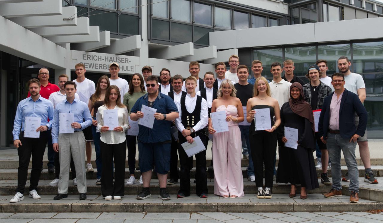 Theorie und Praxis seien in dieser Art der Ausbildung ideal verbunden und nun seien die Absolventen in einer Zeit, in der über Fachkräftemangel und wirtschaftliche Herausforderungen gesprochen werde, bereit, ihren Teil zur Lösung dieser Probleme beizutragen. Dafür brauche es junge Menschen, die mit handfestem Können, mit Verstand, mit Haltung und mit klarem Blick auch ethische und gesellschaftliche Fragen bewerten zu können. Ein Tipp hatte Michael Schuler noch, den er mit auf den Weg geben wollte, die neuen Fachkräfte sollen ihren Humor behalten – dieser sei mitunter das wichtigste Werkzeug im Koffer. Damit verabschiedete er seinen ersten Jahrgang mit der Bitte, nicht zu vergessen, wo sie herkommen: aus der Erich-Hauser-Gewerbeschule – wo aus Theorie Wirklichkeit wird.