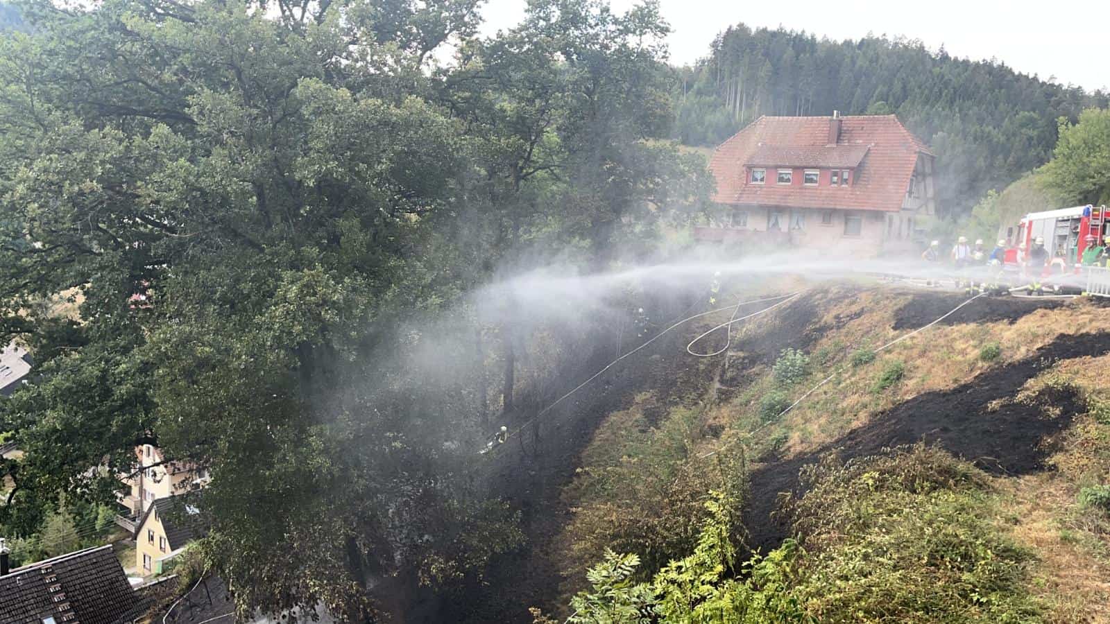 Wieder brannte eine Fläche bei Lauterbach, diesmal am Rande der Gemeinde inmitten mehrerer Wohnhäuser. Die Rettungskräfte waren im Großeinsatz. Ein rasches Eingreifen der Feuerwehr von mehreren Seiten konnte ein Übergreifen des Feuers auf die Wohnbebauung verhindern, hieß es vor Ort. Erst vor wenigen Tagen hatte ein Waldstück am Rande der Schwarzwaldgemeinde gebrannt.