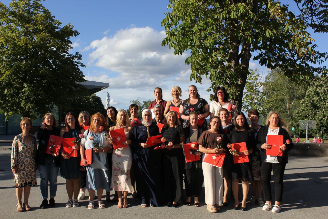 Zum Schluss soll noch auf eine weitere besondere Leistung hingewiesen werden: Vier der neunzehn frischgebackenen Sozialpädagogischen Assistentinnen haben sich zusätzlich zur regulären Ausbildung durch die Teilnahme an Zusatzunterricht sowie durch ein umfangreiches Selbststudium auf die Schulfremdenprüfung zum Erzieher (schulischer Teil) vorbereitet. Alle vier Kandidatinnen haben bestanden, für zwei Absolventinnen gab es sogar eine Belobigung. Diese vier Absolventinnen sind nun berechtigt, das Berufspraktikum Erzieherin aufzunehmen.
