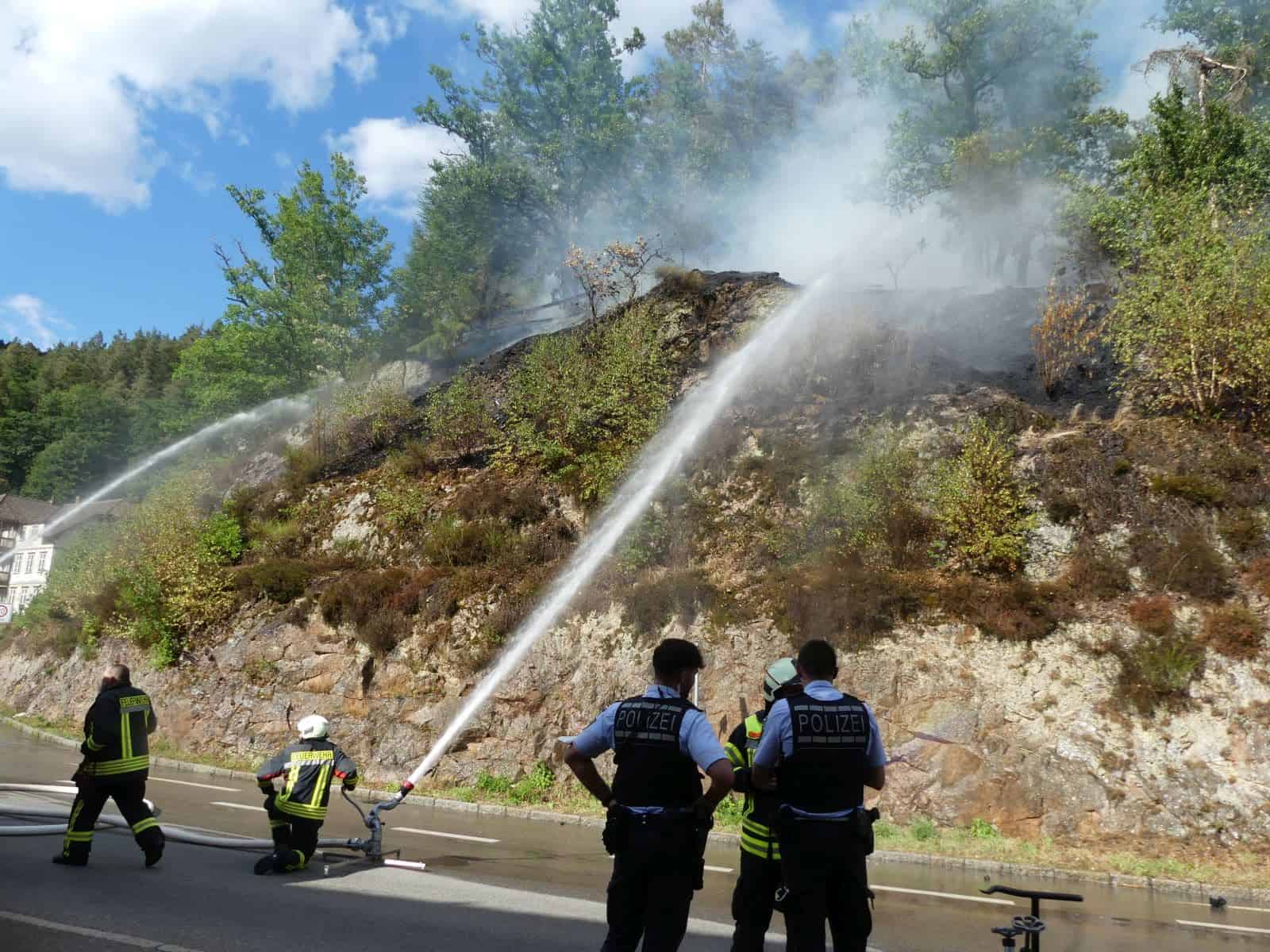 Update 18.40 Uhr: Rainer Pfaff aus Lauterbach hatte die Flammen gegen 16.50 Uhr am Hang gegenüber seines Hauses entdeckt und gleich die Feuerwehr alarmiert. „Ein Baum hat Feuer gefangen und ist dann fast explodiert“, berichtet er. Von ihm stammt auch das Video mit dem Brand.