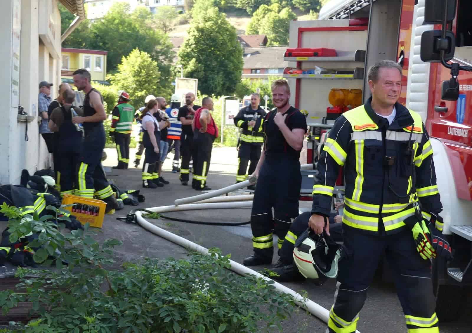 Das DRK Lauterbach versorgte die Feuerwehrleute mit Getränken. Das THW aus Schramberg und die Polizei waren ebenfalls vor Ort. Die Brandursache war am Abend noch unklar.