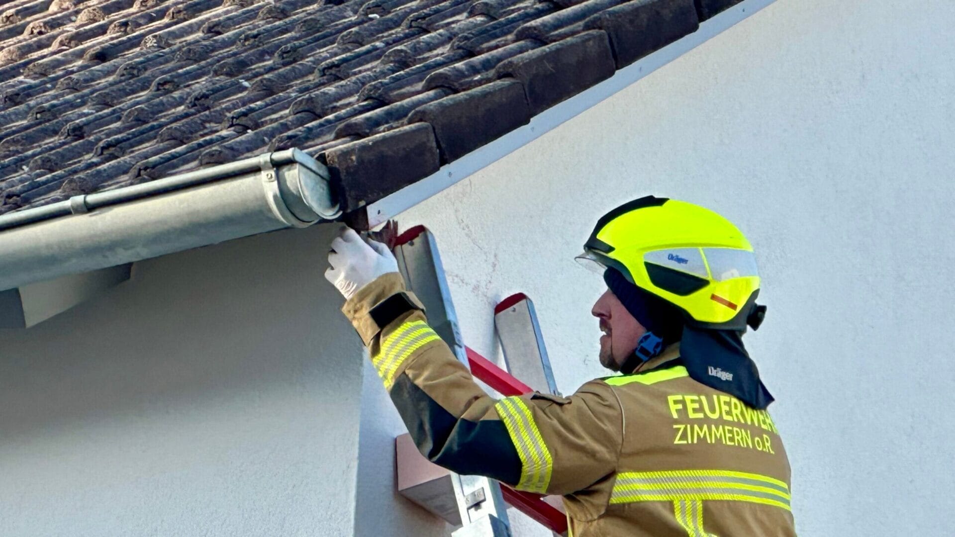 Retten, löschen, bergen, schützen. Dazu haben sich Feuerwehrleute verpflichtet. Das gilt auch für einen Vogel in misslicher Lage, wie sich in Zimmern ob Rottweil zeigte.