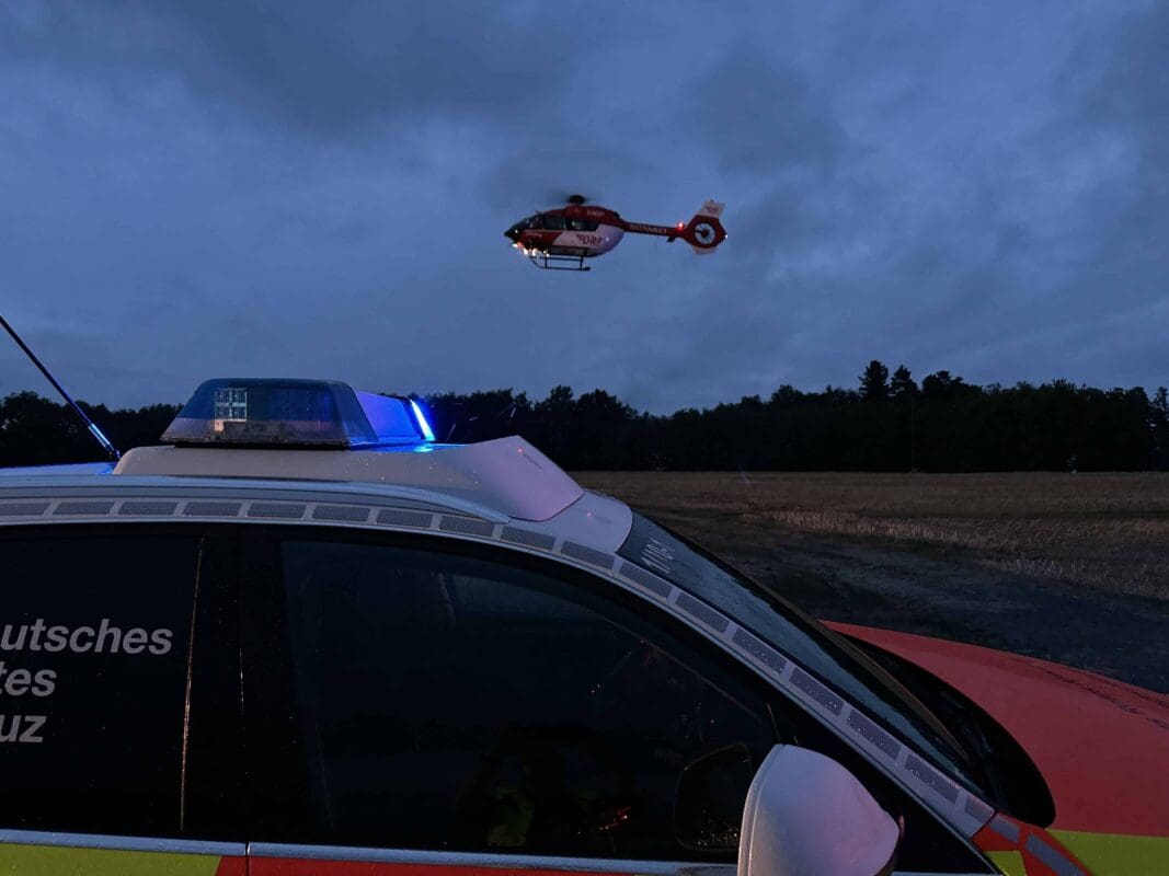 Die hauptamtlichen Retter kamen mit zwei Rettungswagen und einem Notarztfahrzeug kurz darauf an der Unfallstelle an. Wiederum nur wenige Minuten später erreichte aus der Luft der Rettungshubschrauber die Einsatzstelle. Vor allem, um diese großflächig auszuleuchten, wurde die Feuerwehr hinzu alarmiert.