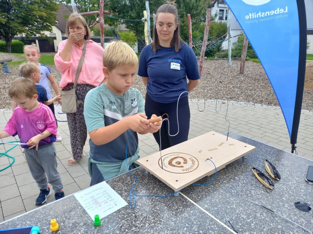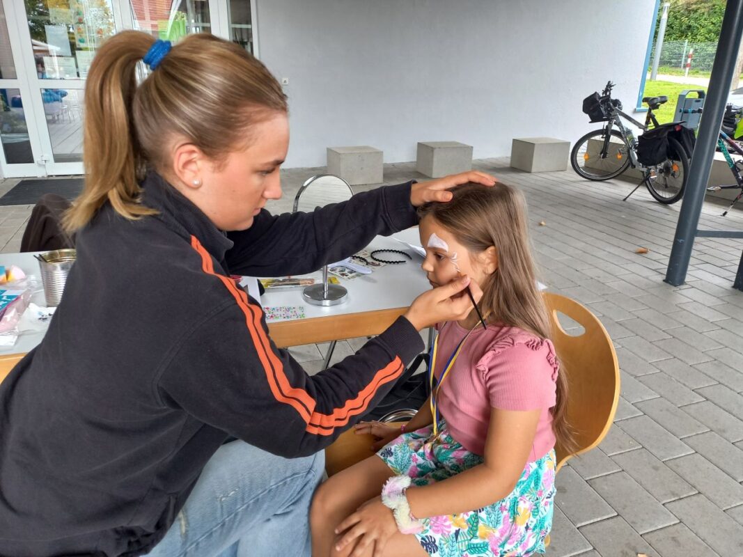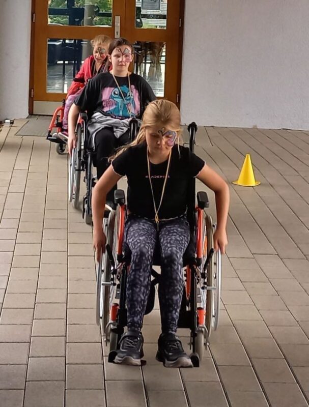 Gewonnen haben am Schluss alle. Ob jung oder schon etwas älter, ob mit oder ohne Behinderung – das spielte überhaupt keine Rolle. Alle fühlten sich pudelwohl, und genau dieser Zustand zeichnet Inklusion aus. Einmal mehr zeigte sich auch, dass es nicht immer elektronische High-Tech-Angebote sein müssen, um Spielfreude zu wecken. Uralte Ideen wie das Büchsenwerfen, Kegeln oder Zielspritzen wirken durchaus attraktiv, wenn sie richtig präsentiert und in der Gruppe gespielt werden können. Zehn Stationen waren vorbereitet. Neben den schon genannten lockten noch ein Besuch in der Turn- und Bewegungslandschaft, ein Rollstuhl-Parcours, Hindernislauf, Tic-Tac-Toe-Feld, ein „heißer Draht“, ein Eierlauf mit besonderen Herausforderungen, sowie ein Zielwurf mit diversen Kopfbedeckungen, die höchst unterschiedliche Flugeigenschaften hatten. Gut belagert war auch immer der Stand, an dem sich Kinder schminken lassen konnten.