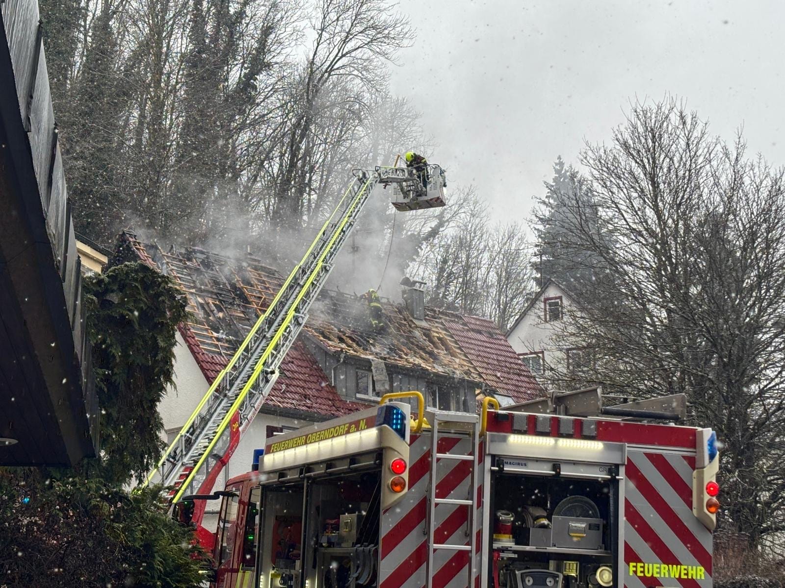 Mittels Drehleiter gelang es der Feuerwehr, einen im Gebäude eingeschlossenen Hund zu retten, berichtet die Polizei weiter. Insgesamt waren mehr als 100 Einsatzkräfte vor Ort, um gegen das Feuer anzukämpfen. Auch am Morgen nach dem Brand sind weiterhin Feuerwehrleute vor Ort und mit Nachlöscharbeiten beschäftigt. Zur Unterstützung der Oberndorfer Wehr waren Kameraden aus Sulz mit der Drehleiter angerückt.