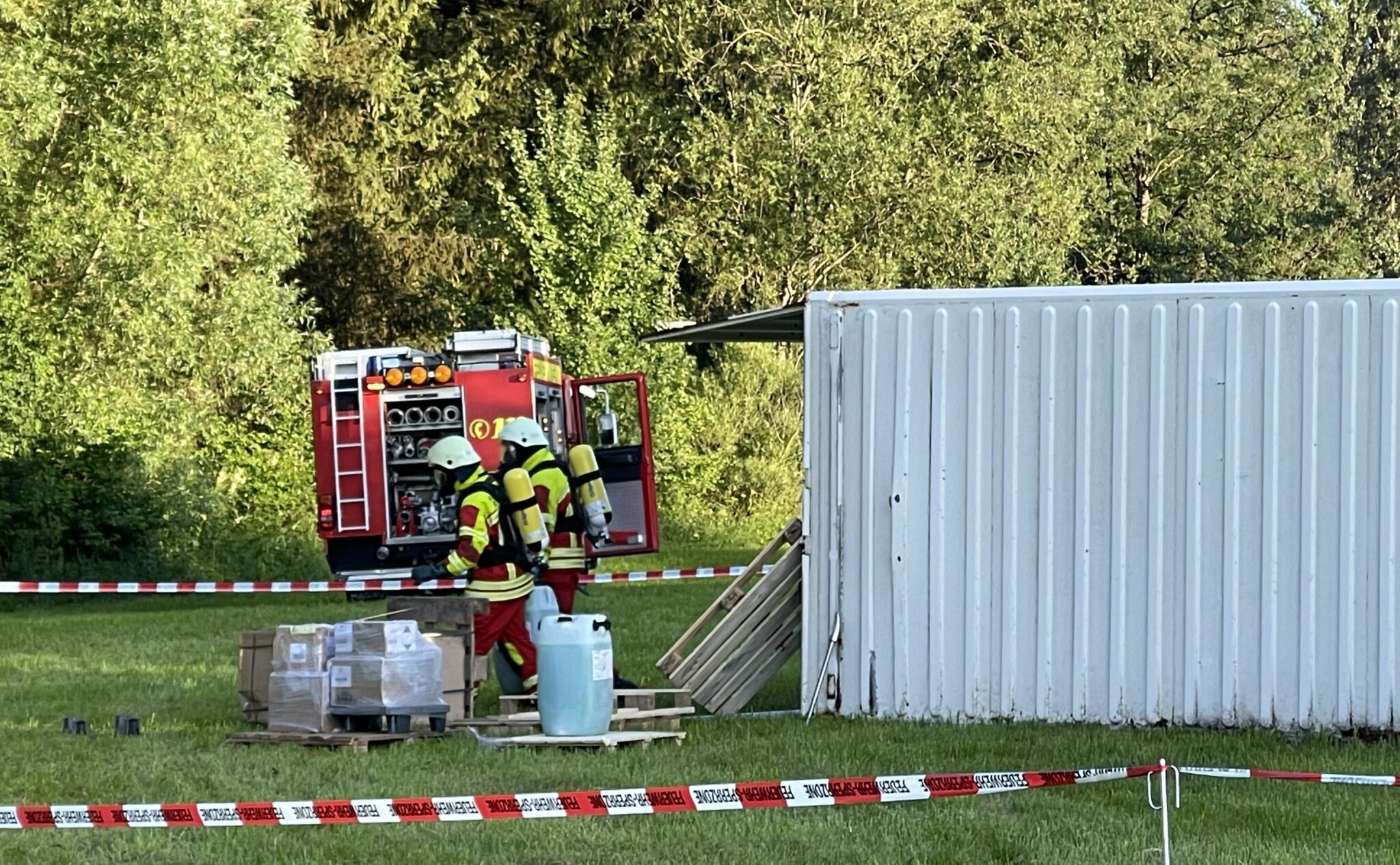 Der Feuerwehrkommandant ließ den Bereich absperren und den Anhänger unter Atemschutz öffnen. Die Einsatzkräfte räumten ihn aus.