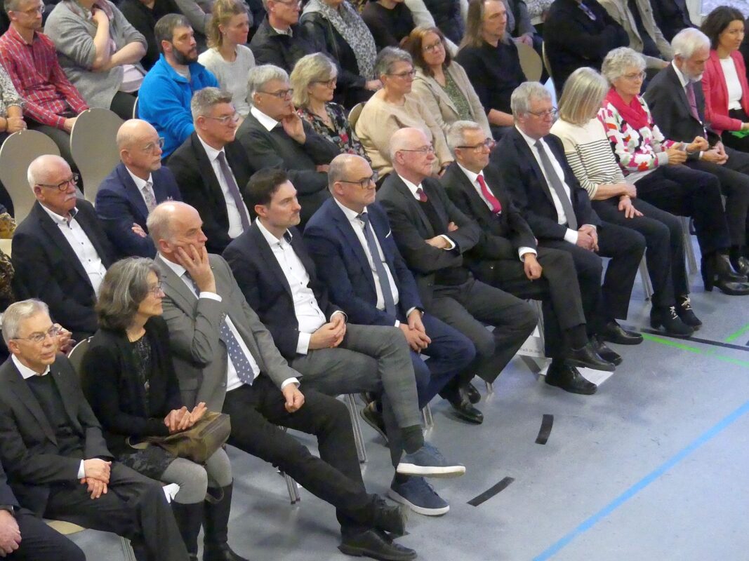 Vertreter der Kirchen, der Sparkasse, der Schulen, der Vereine, aus dem Gemeinderat und Kreistag, aus Handel, Handwerk und Gewerbe waren in die Halle gekommen und zahlreiche Bürgerinnen und Bürger, die die Gelegenheit zum Plausch im Anschluss nutzten.